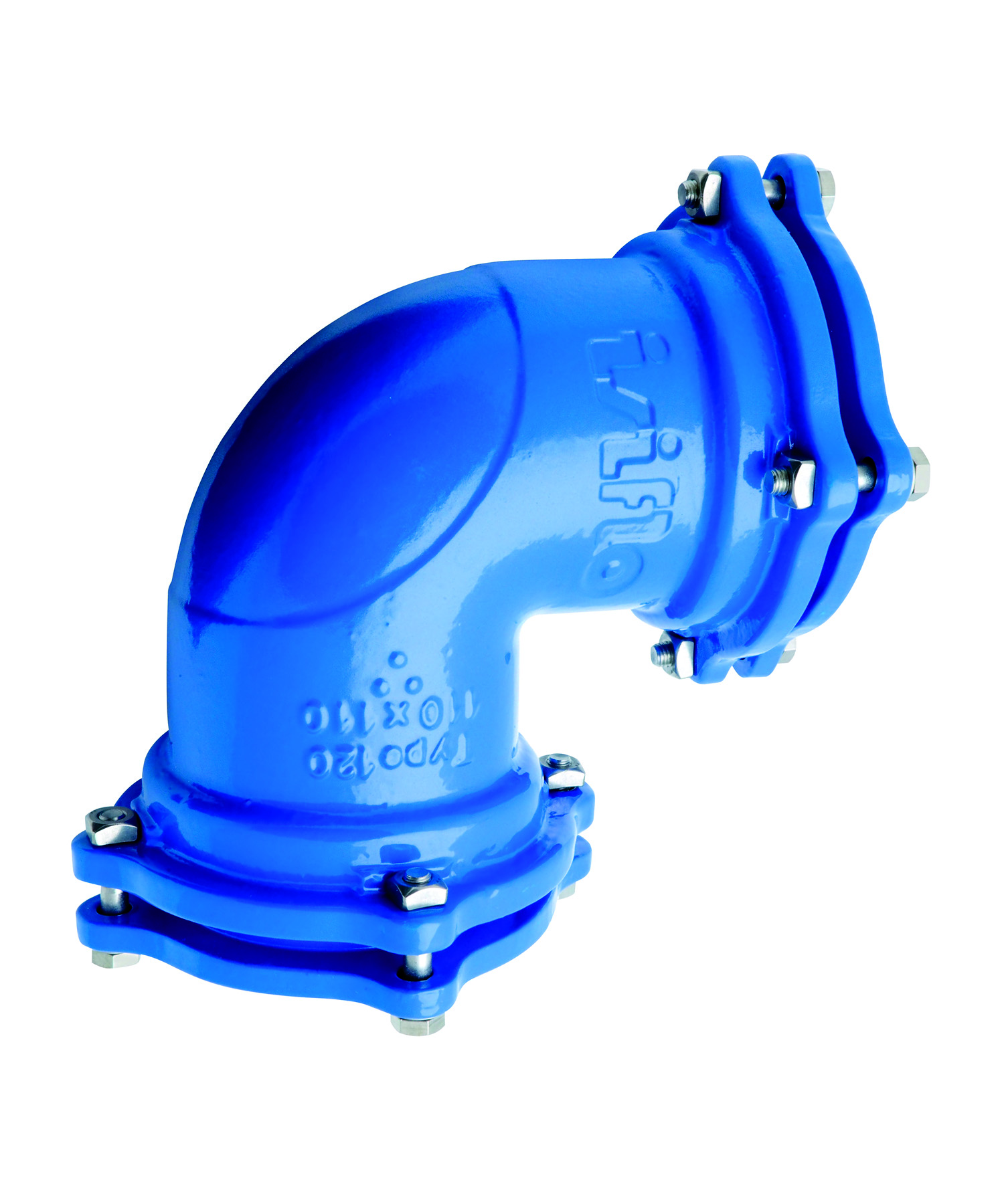 Isiflo 120 Vinkel koppling 90° 160x160, klämring x klämring för PE & Pem,PEH rör i blå epoxybelagd segjärn