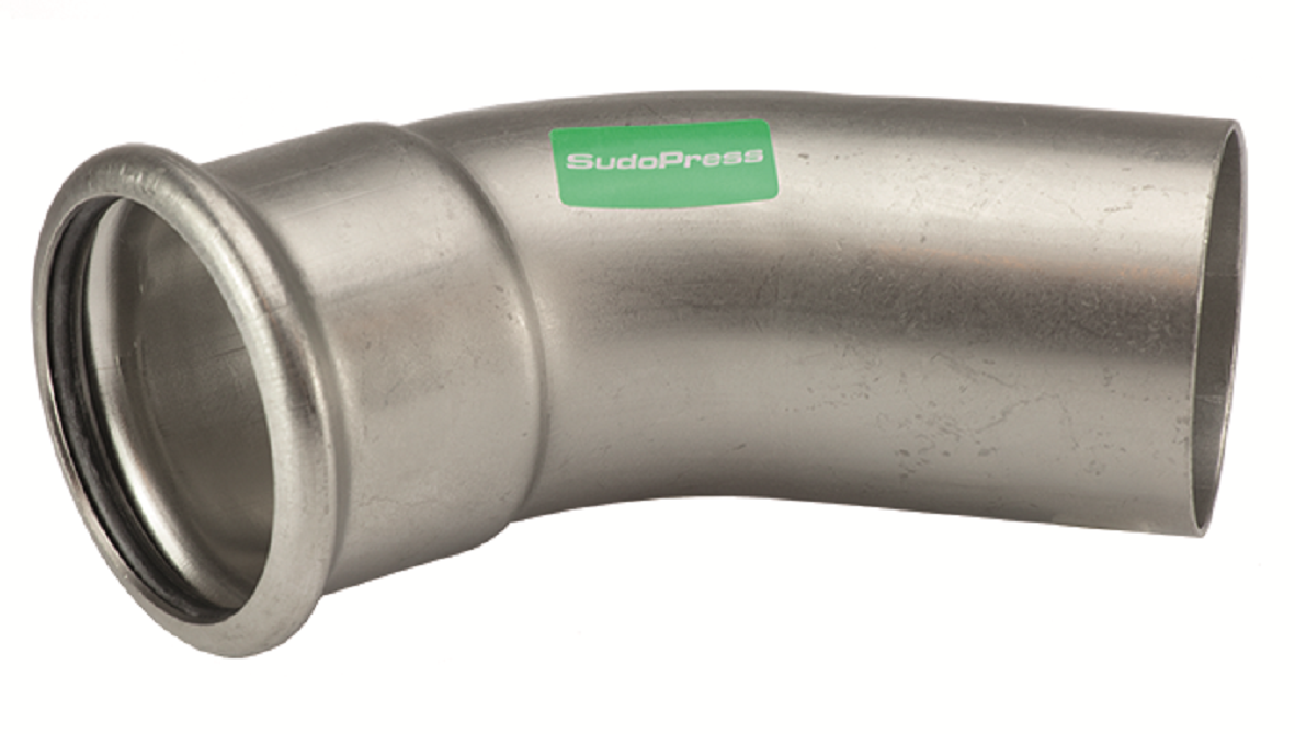 VSH SudoPress Rostfri böj 45° 88.9. Följande användningsområden: