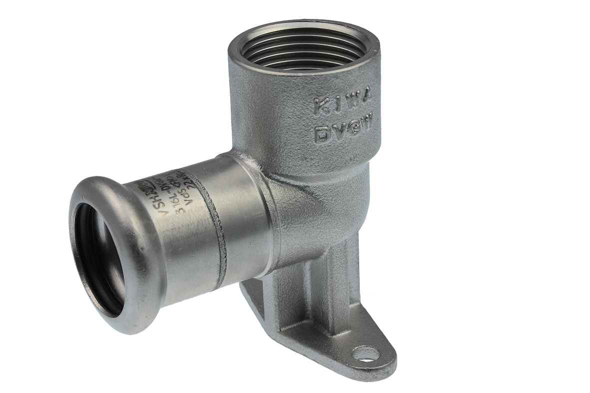 VSH XPress R2737 Ventilfäste 90° 22xRp20, lång muff x invändig gänga i rostfritt stål 316. Följande användningsområden: