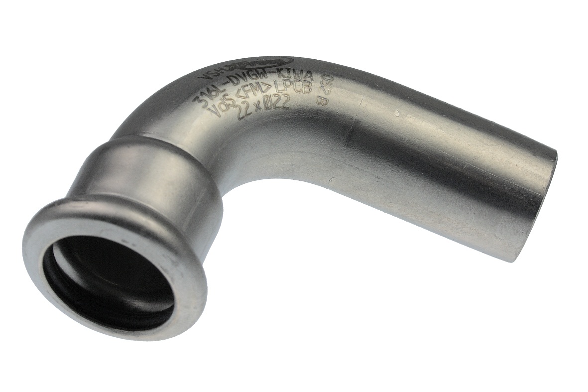 VSH XPress R2711 Böj 90° 108x108, muff x slätända i rostfritt stål 316. Följande användningsområden: