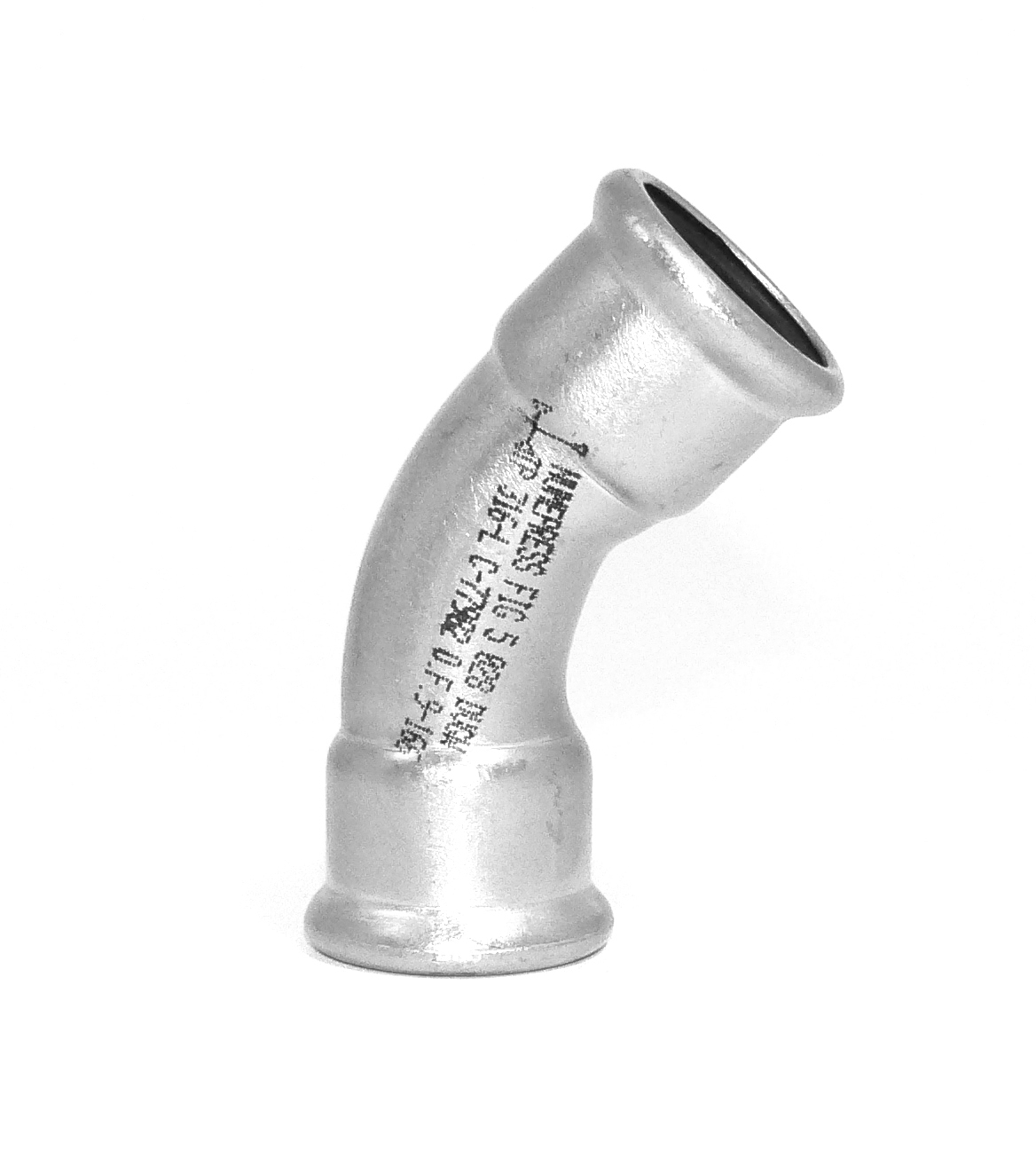 NUMEPRESS Böj 45° med 2 muffar i rostfritt stål 316L