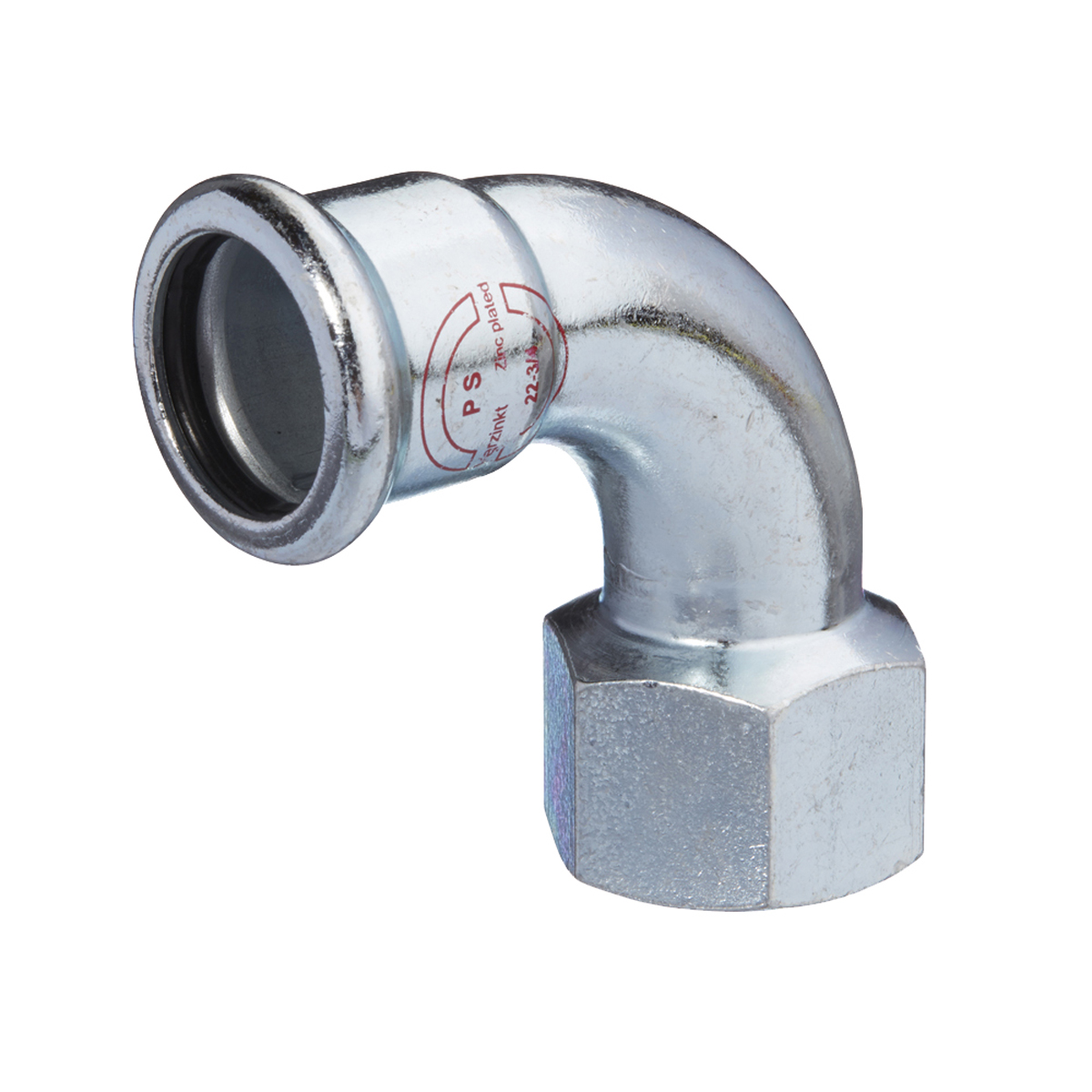 PRESS-STEEL Böj 90° 15xR15 muff x inv. gänga i elförzinkat stål
