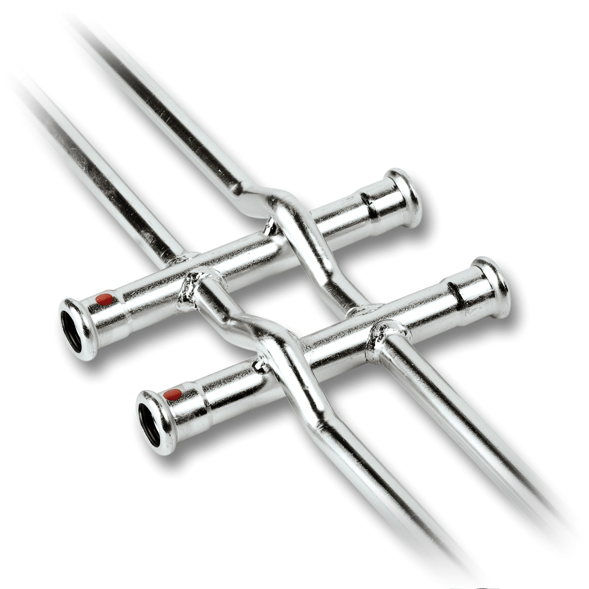 SANHA-Therm pressystem med elförzinkade stålrör för värme-, trycklufts- och kylinstallationer.