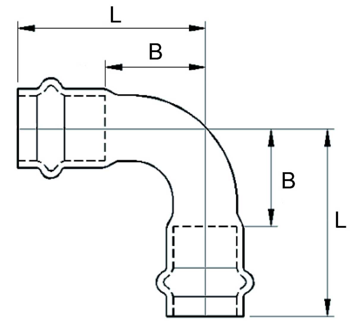 B-PRESS BÖJ 42MM X 90° PN6 TEMP +110°C