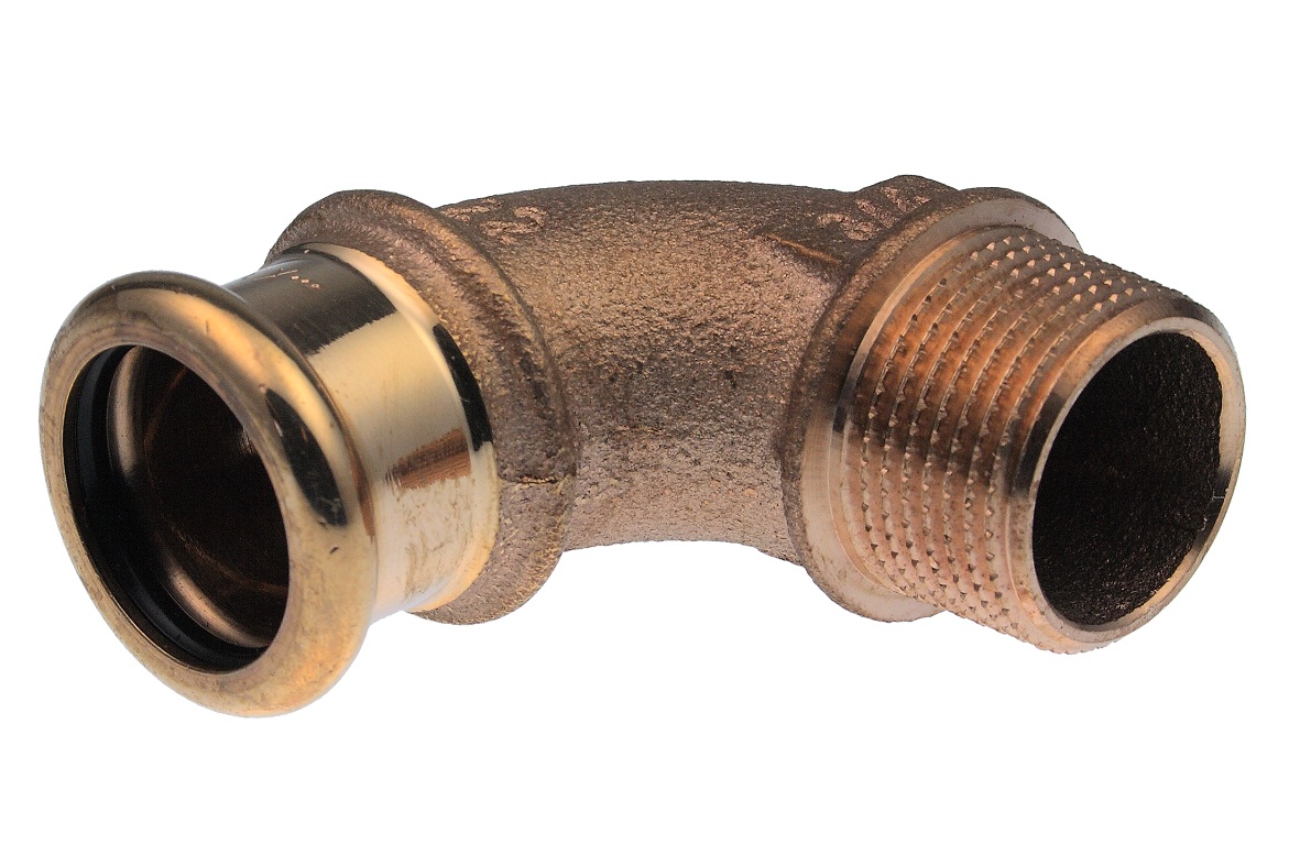 VSH XPress 6092G Böj 90° 12xR15, muff x utvändig gänga i rödgods. Följande användningsområden: