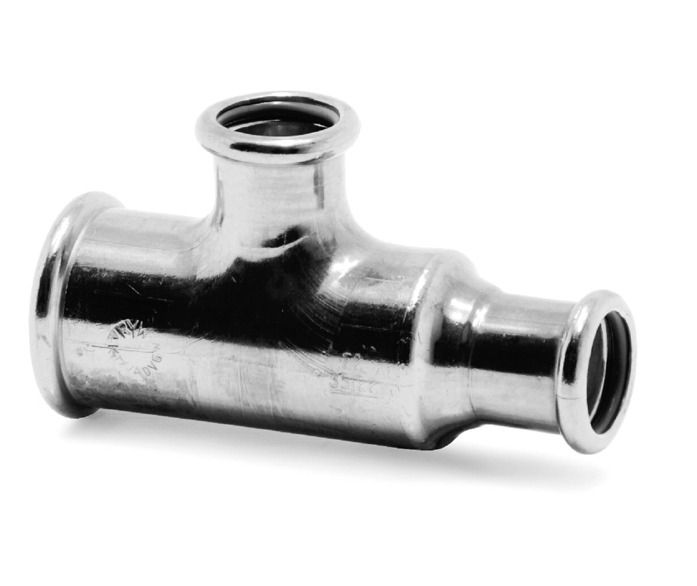 VSH XPress 7130 T-rör förminskad 15x12x12, muff x muff x muff förkromad i koppar. Följande användningsområden: