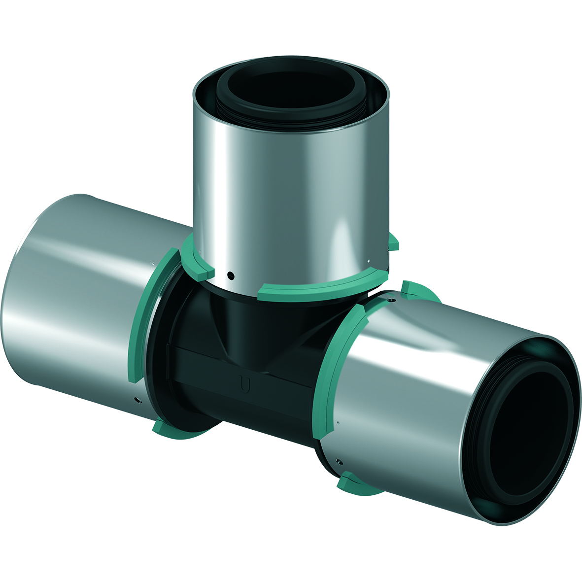 T rör av PPSU med presshylsa av rostfritt stål. Gradning av röret görs med avgradningsverktyg RSK 1880653.