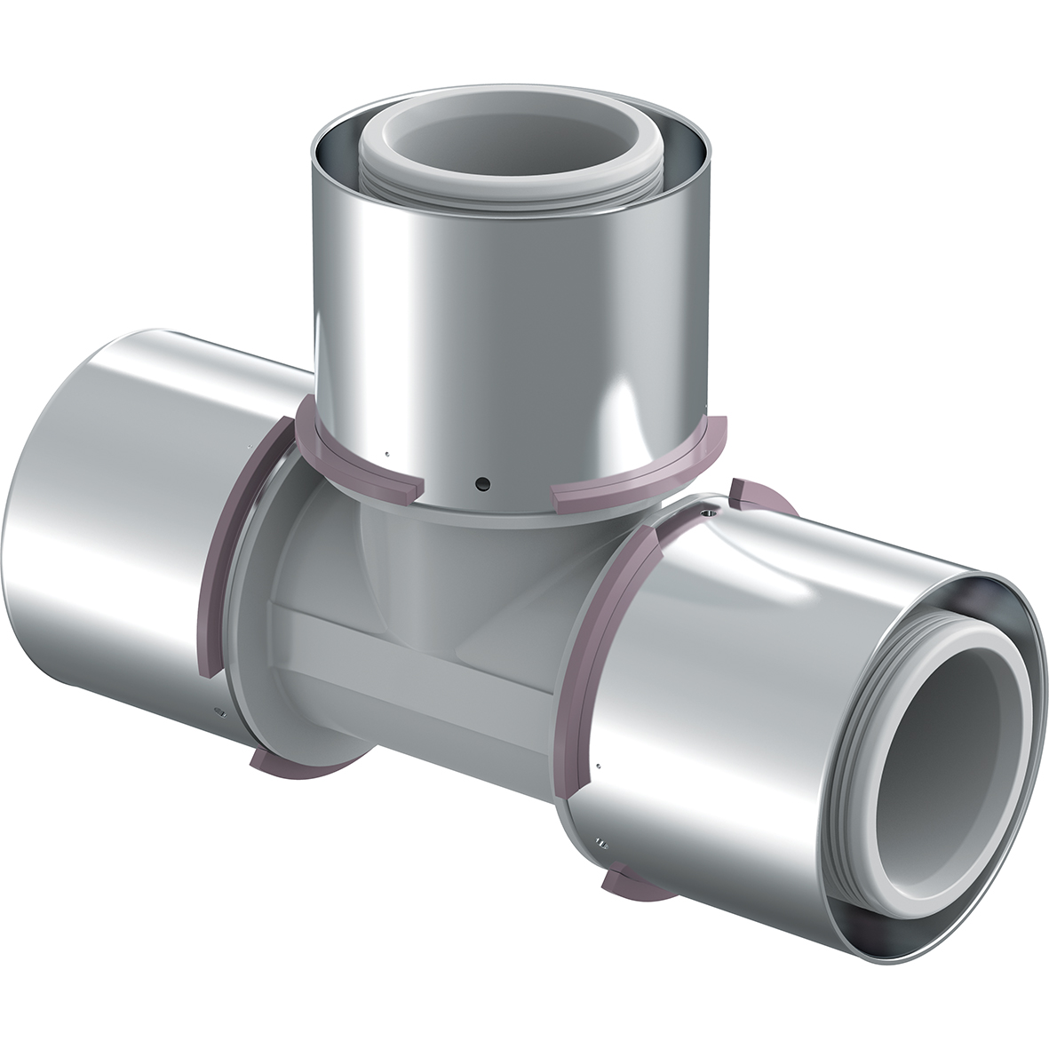 T rör av PPSU med presshylsa av rostfritt stål. Gradning av röret görs med avgradningsverktyg RSK 1880653.