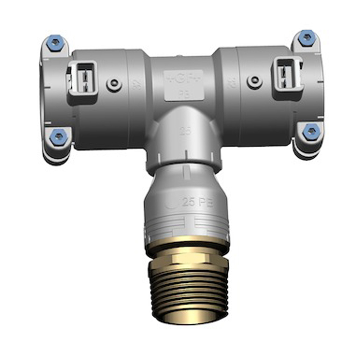 INSTAFLEX PB-Elektrosvets T-rör med 2 muffar/utvändig gänga 25xR20x25. För tappvatten, tryckluft och kylinstallationer. Arbetstemperatur -10°C till +95°C