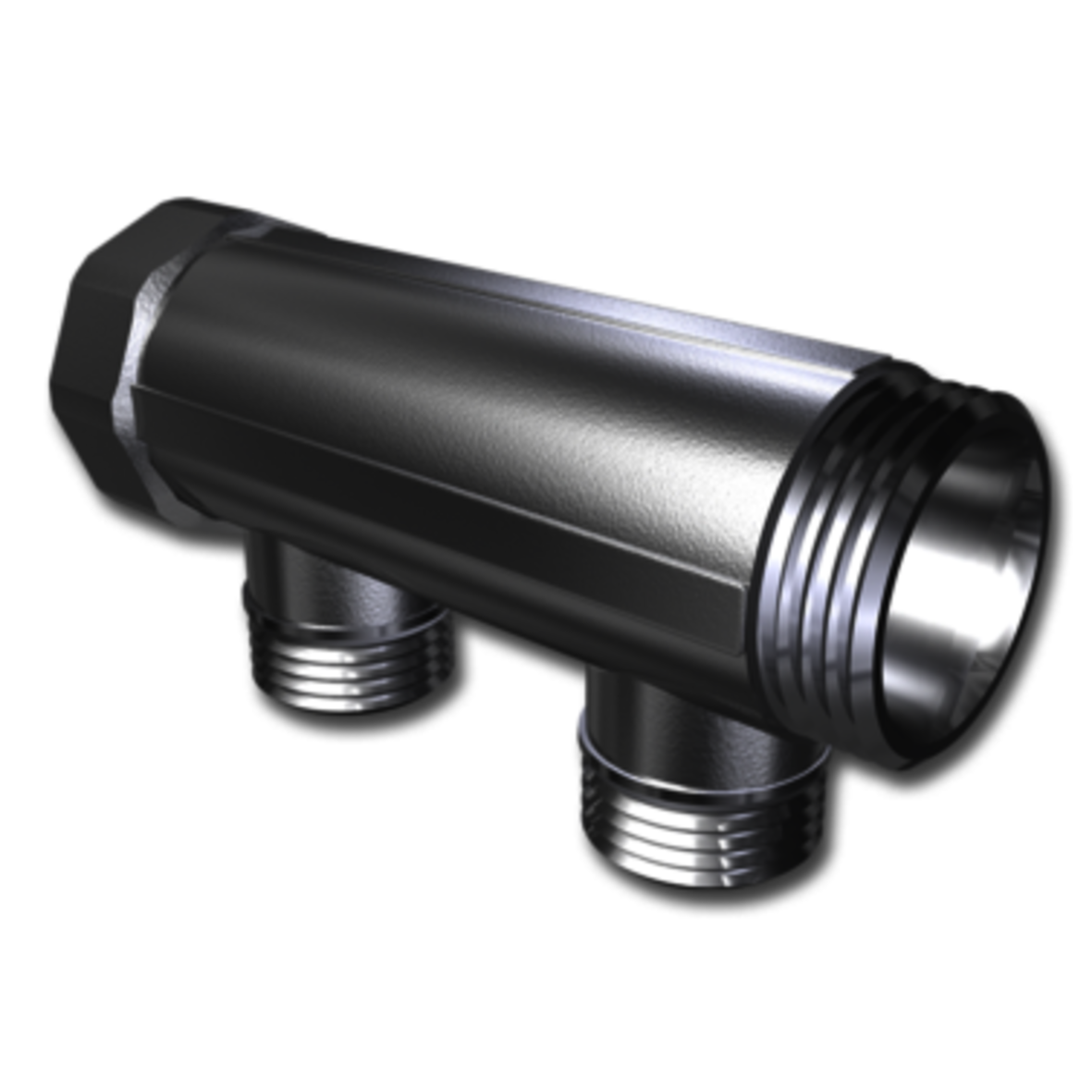 Avsedd för fördelning av större flöden. Fördelaren har anslutning G25 (ut- och inv gg) för matningsledning och anslutning G20 c/c 50 mm utv gg Eurocone i avsticken. Tillverkad av avzinkningshärdig mässing.