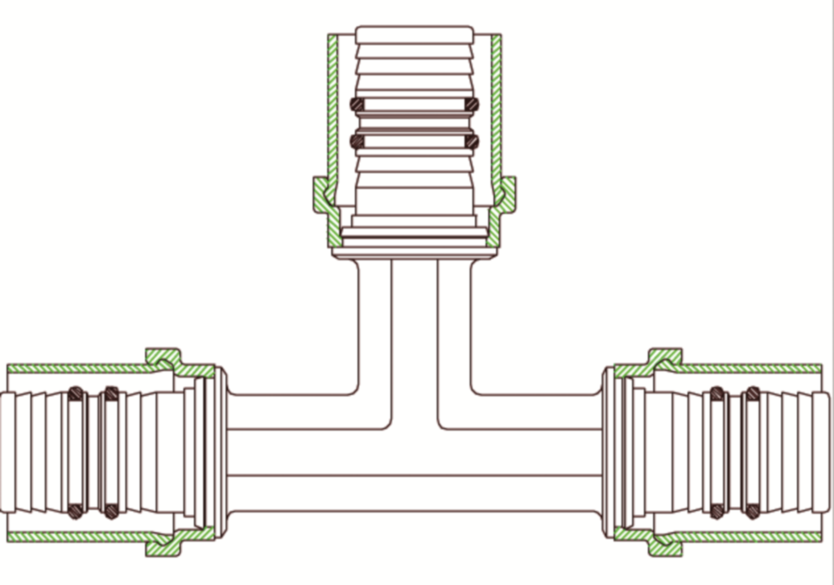 T-koppling. För användning med Multirör PE-RT Type 2 och Multirör AluComposite.