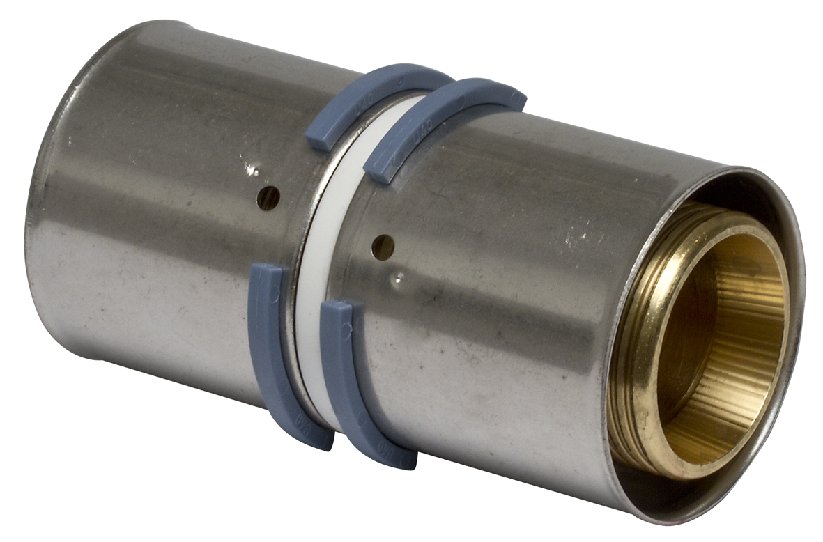 Avzinkningshärdig mässing med hylsa av rostfritt stål. Kopplingen har läckageindikering som indikerar läckage om inte kopplingen är pressad vid täthetsprovning eller vid trycksättning av systemet. För att ge ett snabbt och enkelt montage har presshylsan ett fönster där man ser om röret har rätt insticksdjup. Gradning av röret röret görs med avgradningsverktyg RSK 1880653.