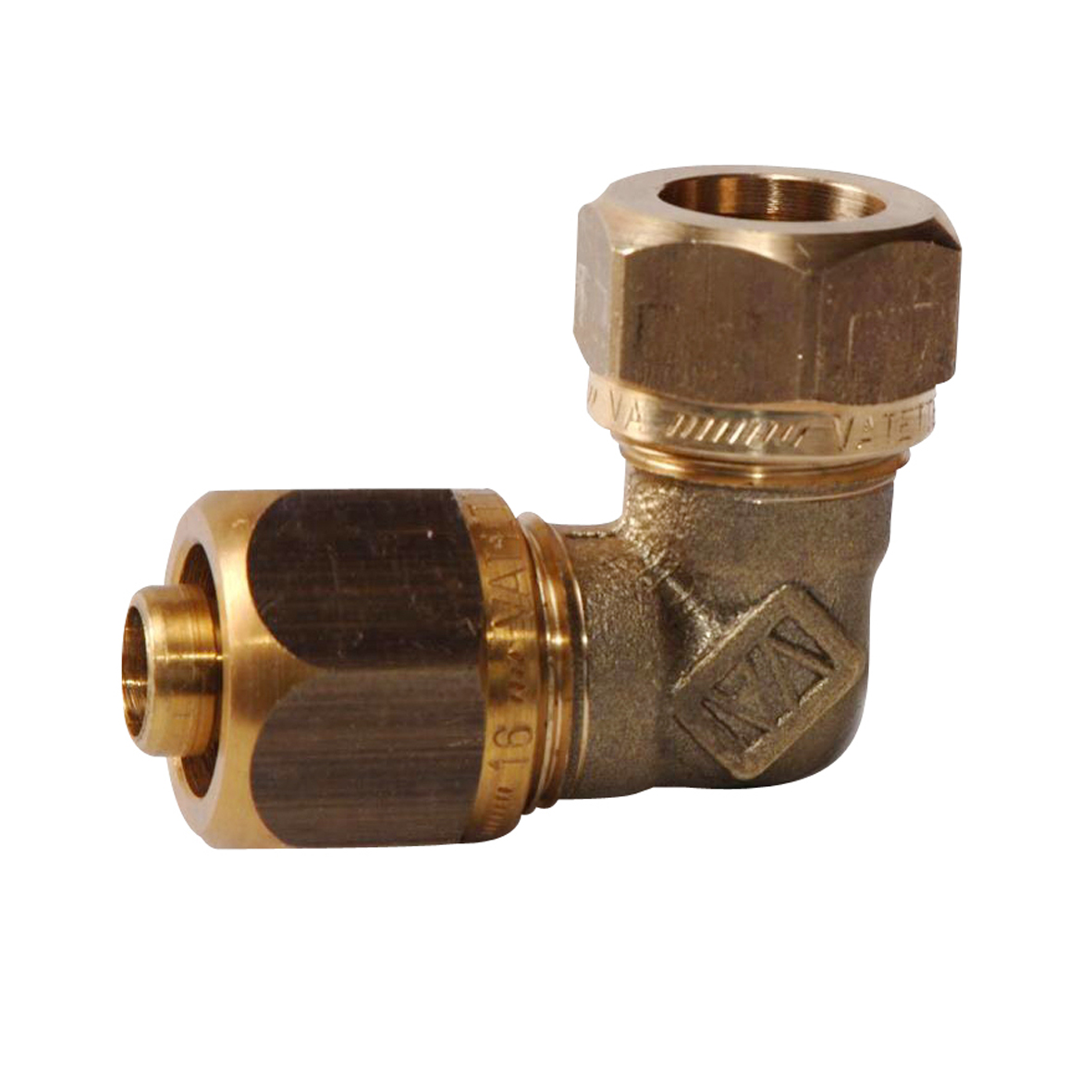 Komplett övergångskoppling vinkel. För övergångar från PEX-, AluPEX- PE-RT-, PEM- eller PB-rör till Kopparrör. Avsedda för t.ex. våtutrymmen, källarplan, kulvertar och WC-ledningar.