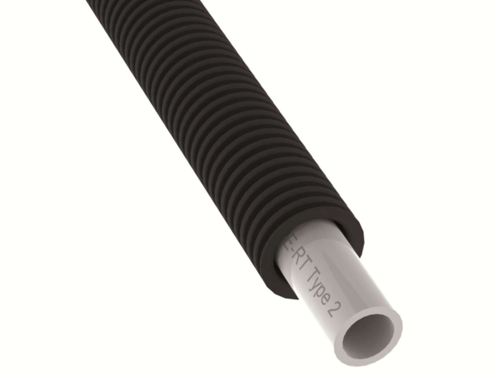 Syrediffusionstätt 5-skiktsrör i PE-RT Type 2 med skyddsrör. Röret är typgodkänt för tappvattensystem (70/95°C, 10 bar) samt lämpligt för användning i kyl- och värmesystem.
