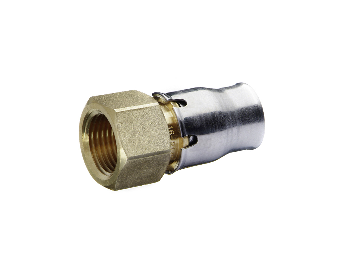 Fränkische Alpex-Plus rak övergång till invändig gänga. Krävs ingen pressmaskin då rören endast sticks in och det blir tätt. Krävs särskilt verktyg för kalibrering av rörändar innan instick, samt om rören behöver tas ut igen. Material avzinkningshärdig mässing.