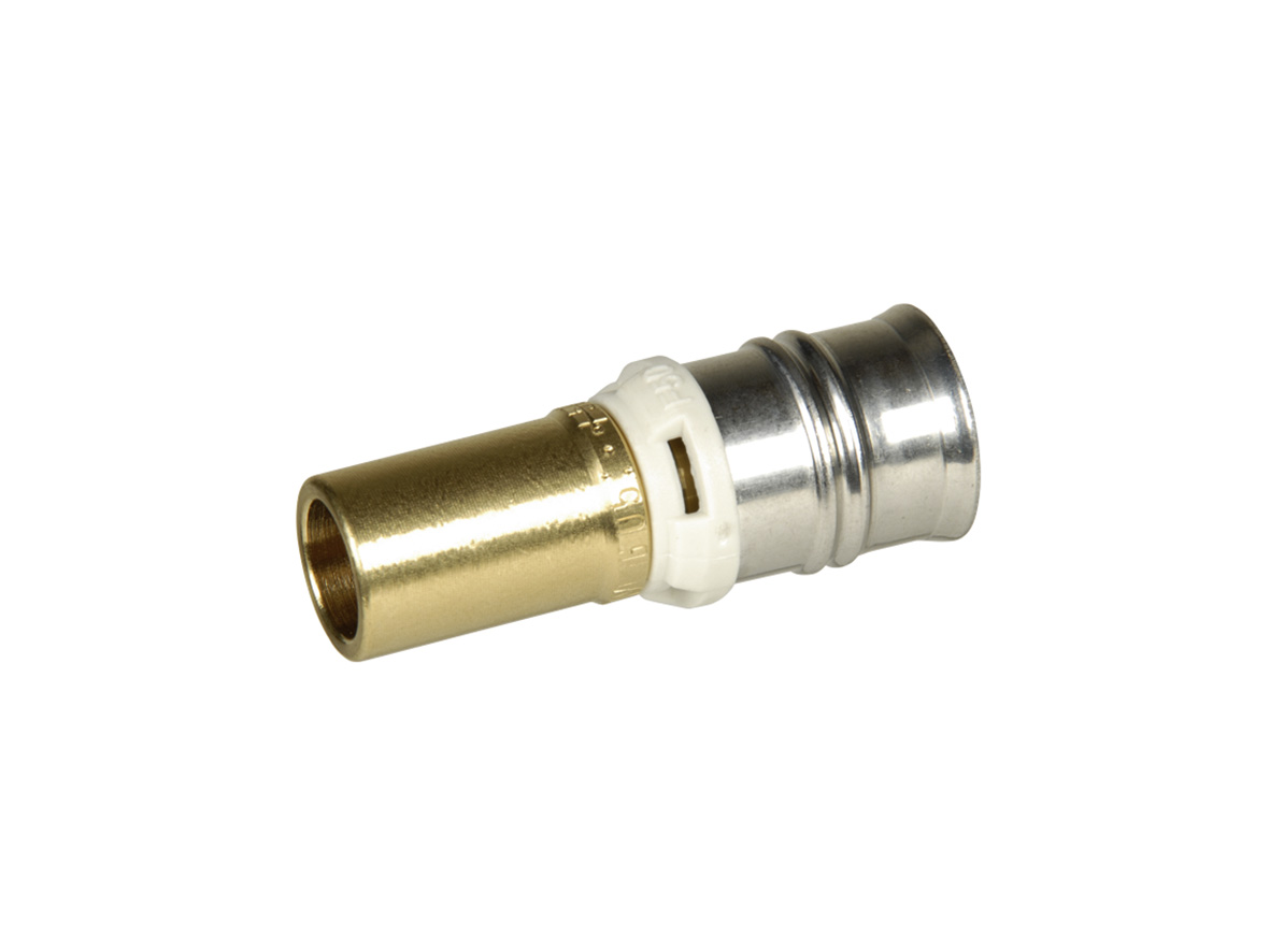 Fränkische Alpex F50 presskoppling med övergång till slätända med plantätning. Material avzinkningshärdig mässing.
