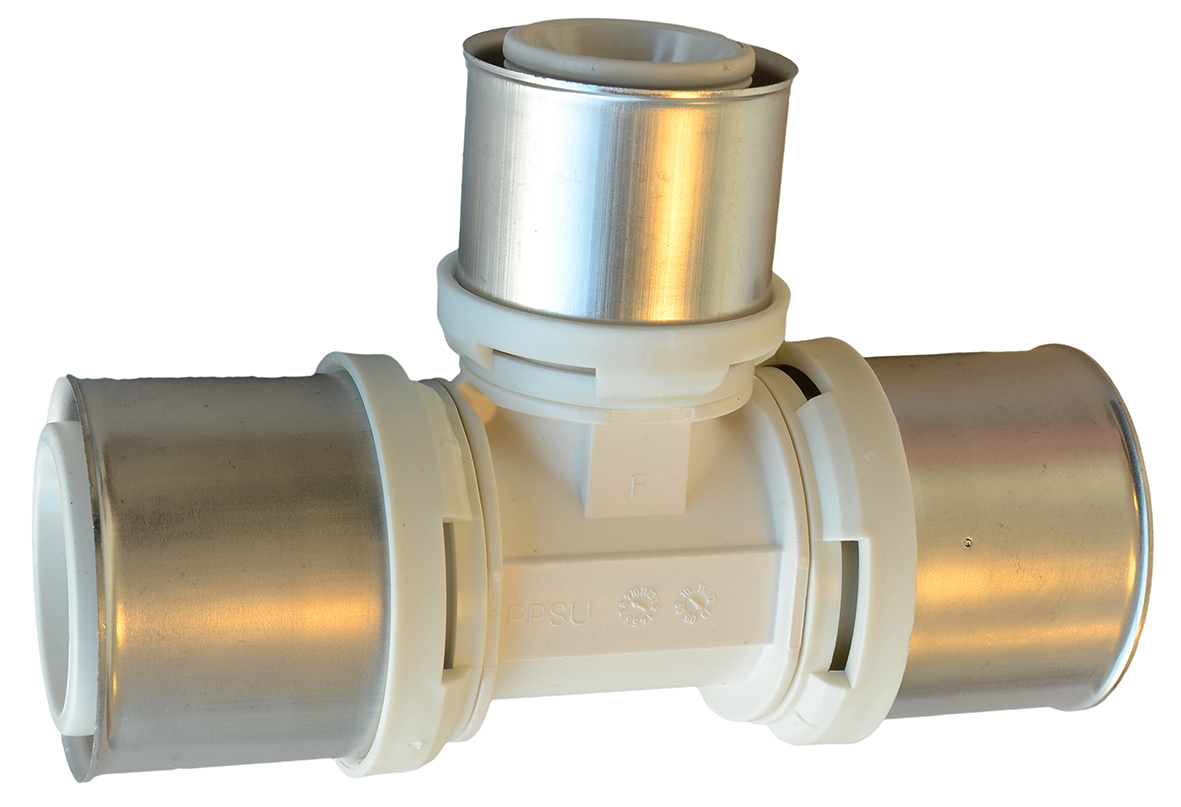 Fränkische Alpex L press T-rör med reducering. Material PPSU.