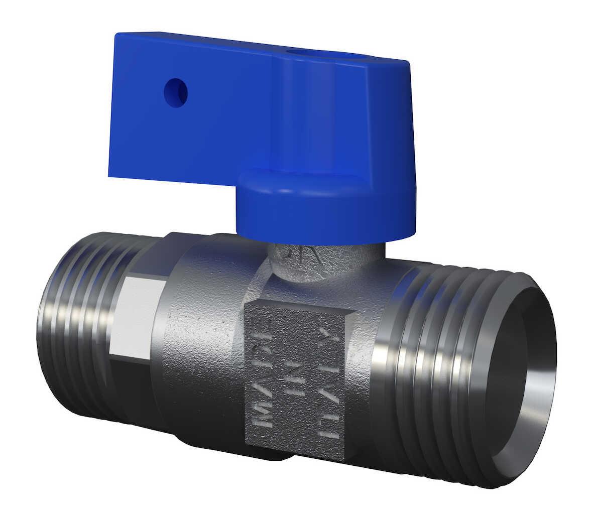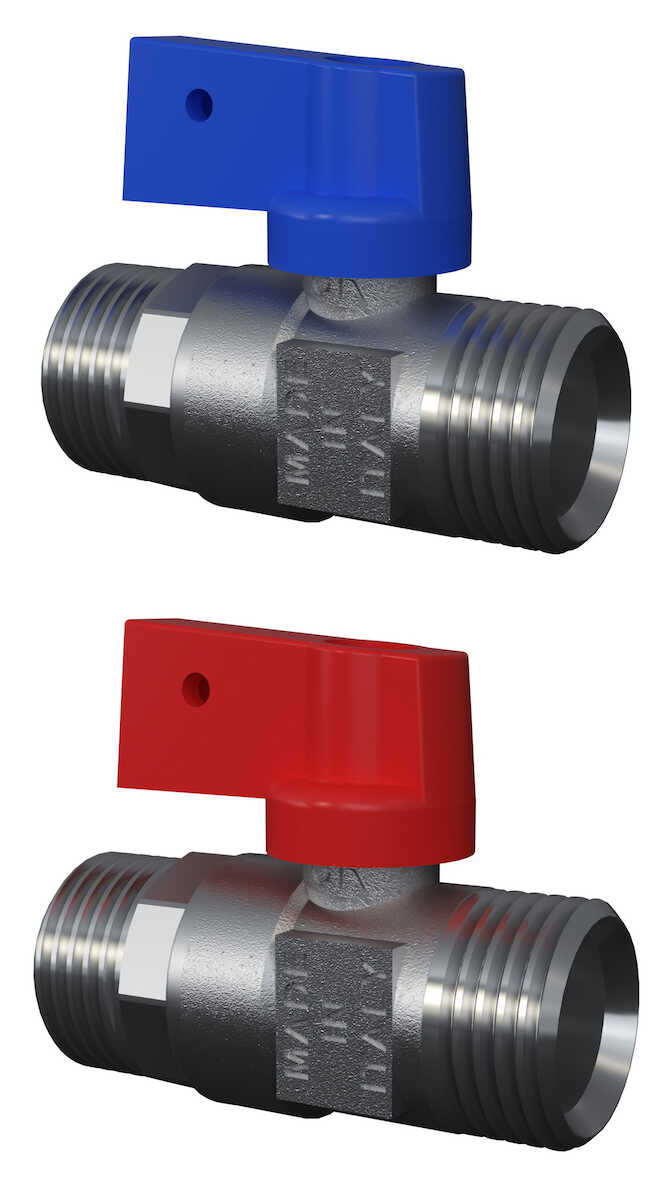 Avstängningsventil i avzinkningshärdig mässing. Utvändiga G15 EuroCone gängor i båda ändar.