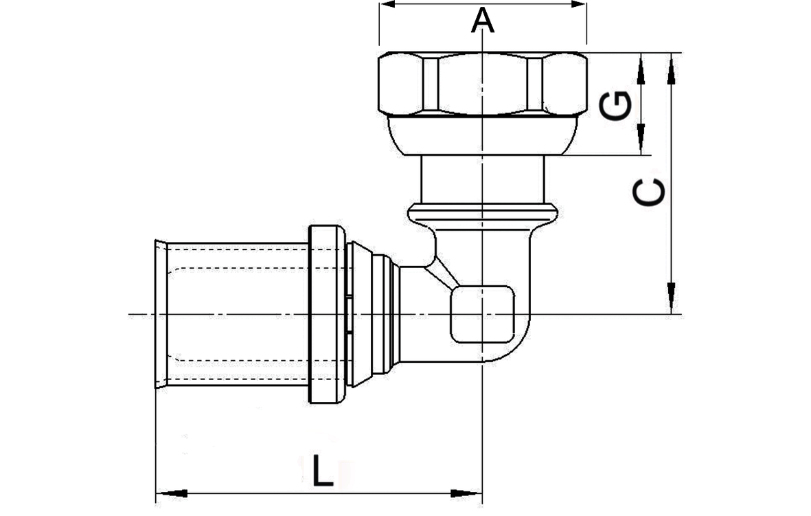 PressPex-koppling med lekande mutter i vinkel för anslutning av LK PE-X samt LK PAL Universalrör mot radiatorkoppel M22.