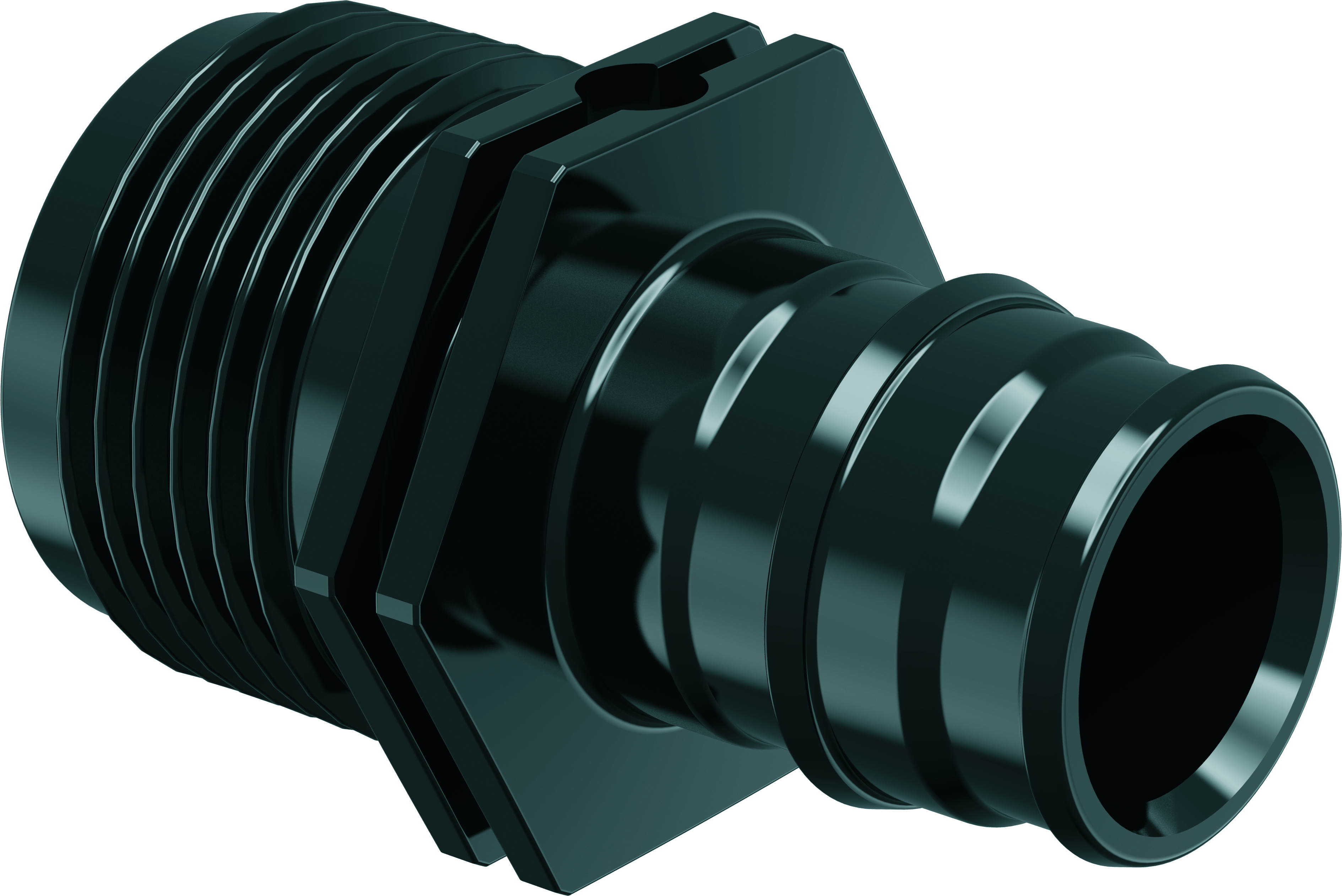 Uponor Q&E PPSU koppling med utvändig gänga. Q&E ring beställs separat. Med Uponor Q&E PPSU och Uponor PEX-rör uppnår man ett hygieniskt, korrosionsfritt rörsystem som inte avger några metaller till tappvattnet då ingen vattenberörd metall finns i systemet.