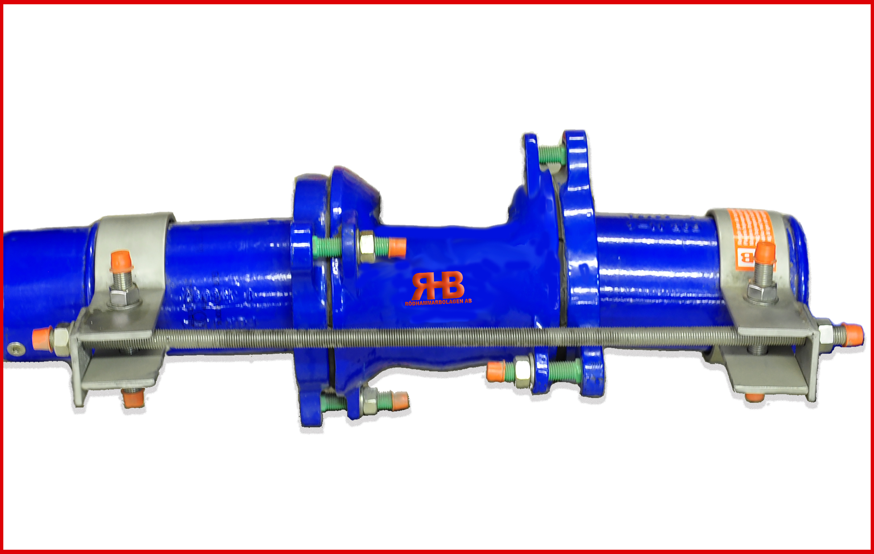 Förankringsboja med dragstag. Levereras som standard med två stycken dragstänger längd 1000 mm för dimensioner upp till DN 350. Från DN 400 levereras den med fyra stycken dragstänger längd 1000 mm. Mönsterskydd S.