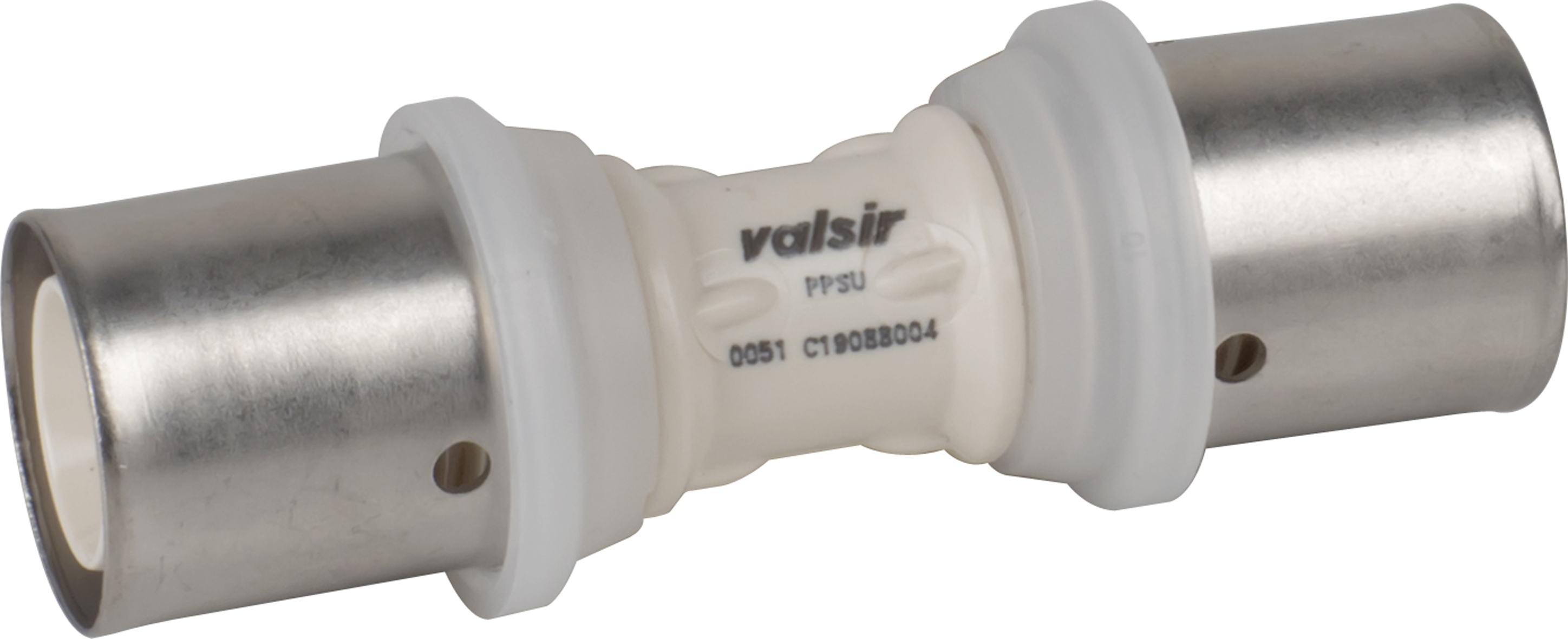 VALSIR Bravopress, koppling för sammanfogning av flerskiktsrör PEX/AL/PEX. Med LBP – Leak Before Press – teknologin indikeras vattenläckage av opressad koppling i samband med att systemet fylls på utan tryck (gäller kopplingar med diameter upp till 40 mm). Munstycket har O-ringar som säkerställer täthet i systemet och försäkrar att inga haverier inträffar. Kopplingarna är tillverkade enligt standard EN ISO 21003-1