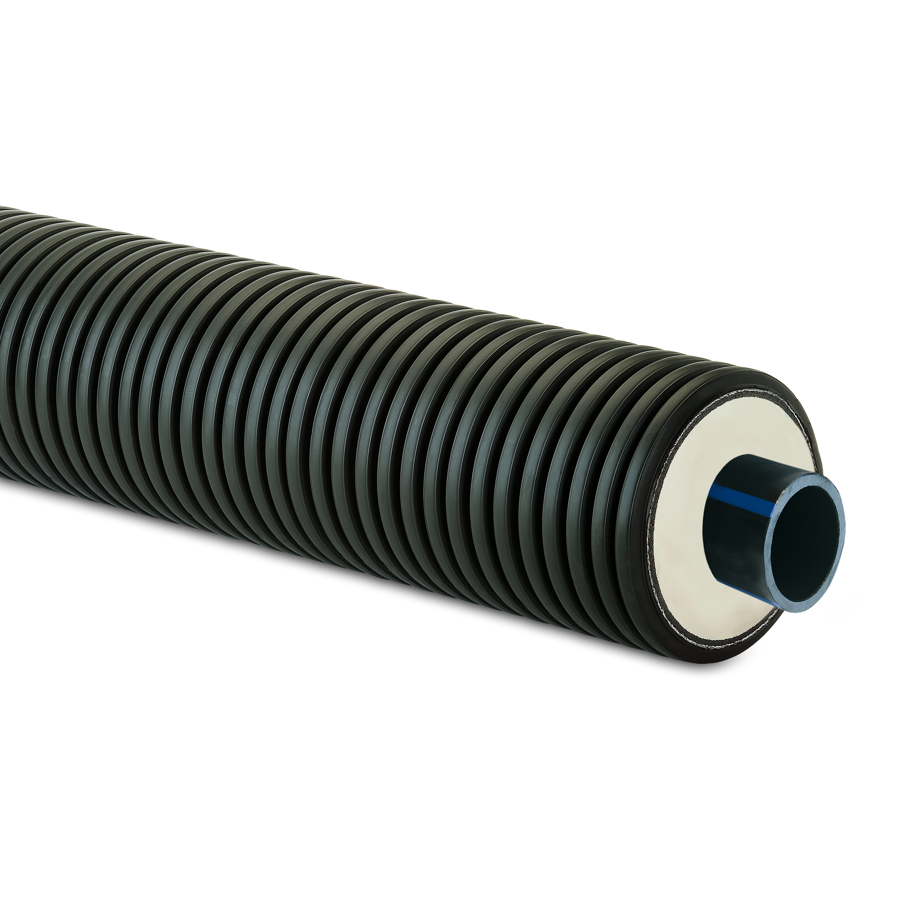 RauHeat BLUE Isolerad kallvattenrörskulvert. Mediarör PE, CFC-fri isolering PUR och korrugerad mantel av HDPE. Avsedda för kallt tappvatten och avloppsledningar med frysrisk. PexFlex BLUE är gjord för 16 bars tryck. Rören kan levereras i exakta längder och kan kompletteras med t-skarvar eller vår Fördelningsbrunn Maxi
