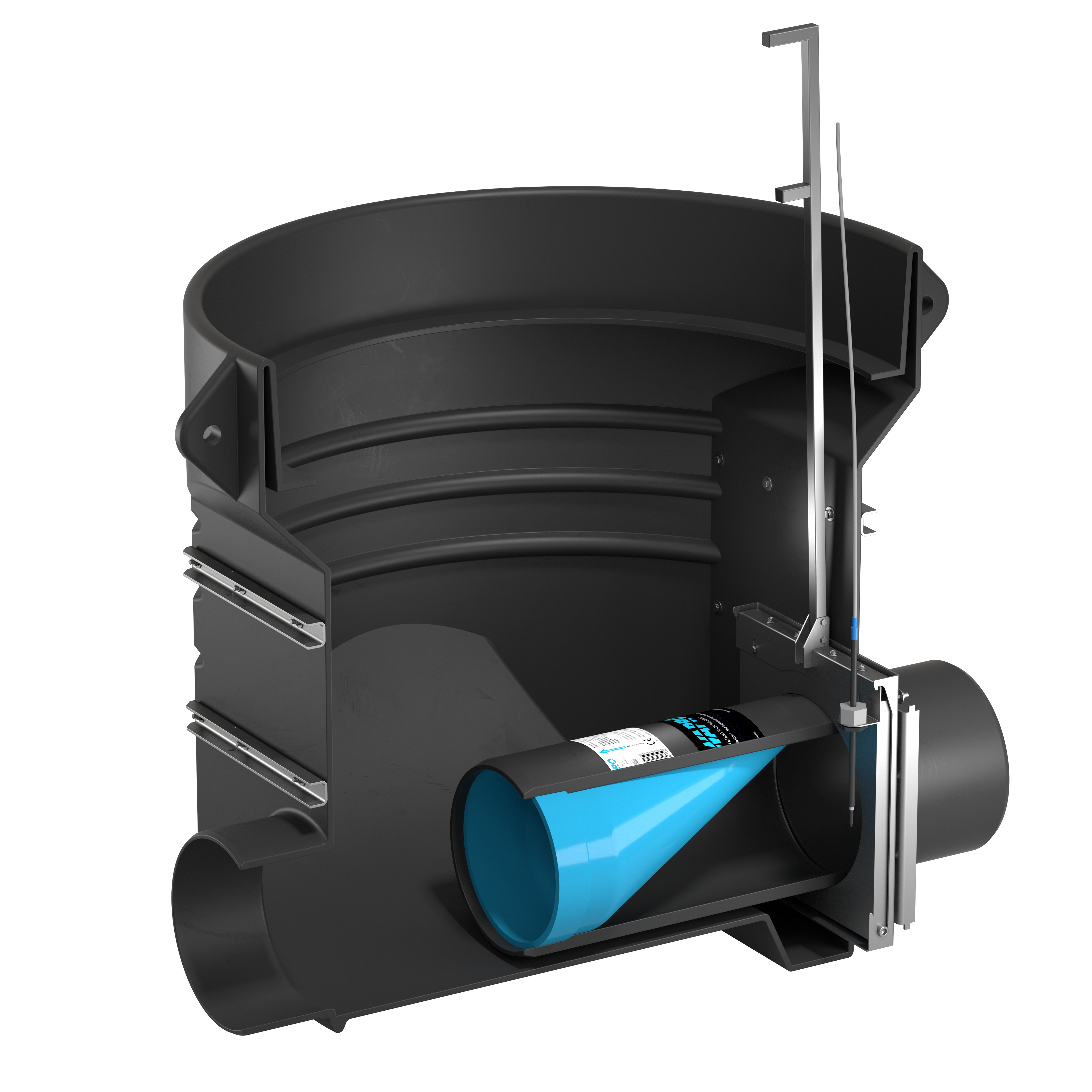 Wapro Access är en komplett spolbrunn Ø400 med anslutningar DN110 alternativ DN160. I brunnen sitter en WaStop® backventil som förhindrar returflöde. Wapro Access är enkel att spola ren tack vare att man kan lyfta upp backventilen från markytan. Den kan installeras på avlopp-, dränering-, och dagvattenledning.