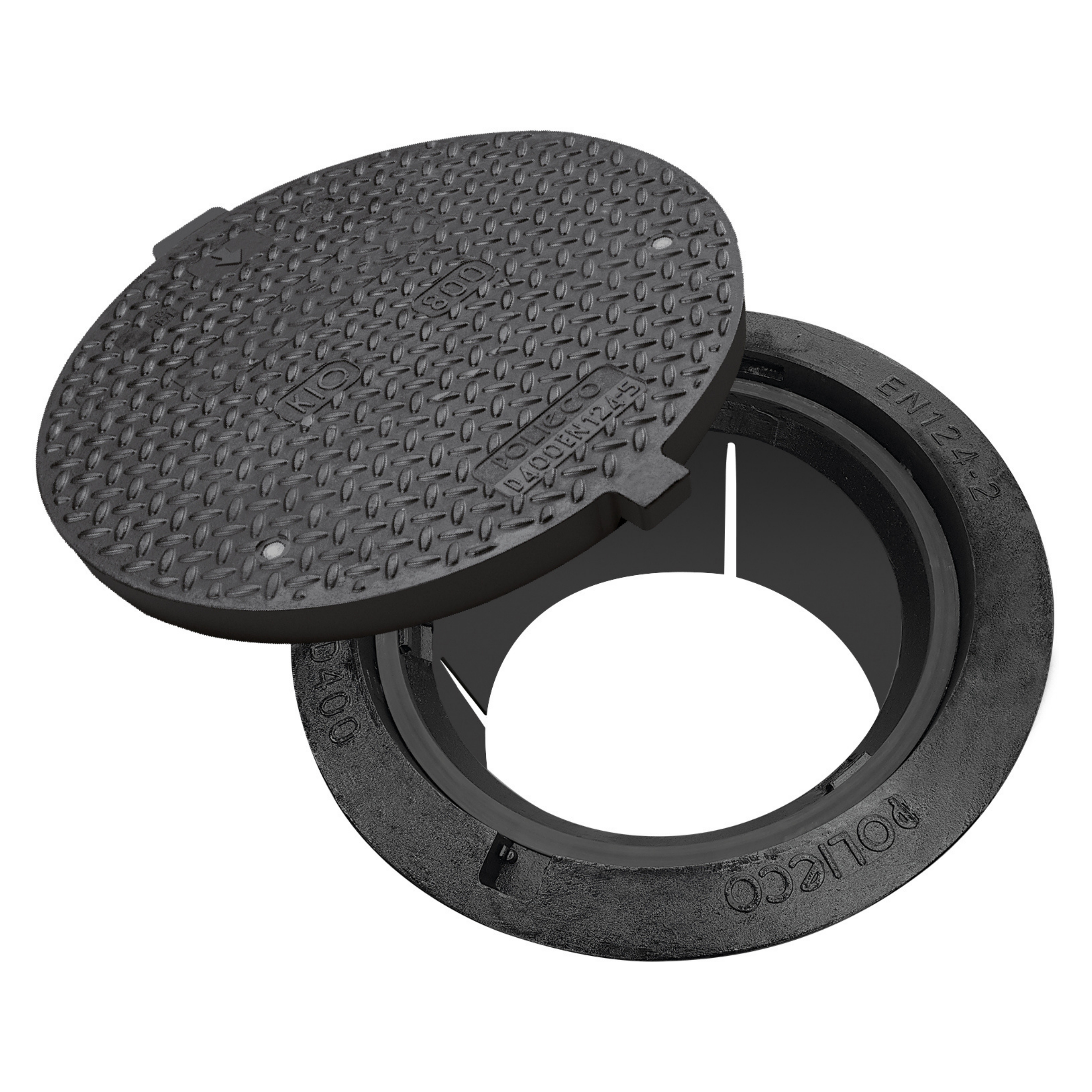 Ø600 Kombi Betäckning - Gjutjärnsram med komposit däcksel. Däckseln är D400 klassad med en vikt på endast 20kg. Lång hals. Betäckningen är testad och godkänd enligt EN124