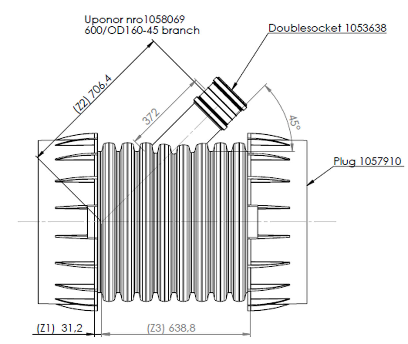 IQ GRENRÖR 600X160MM X45°(ID600XYD160)