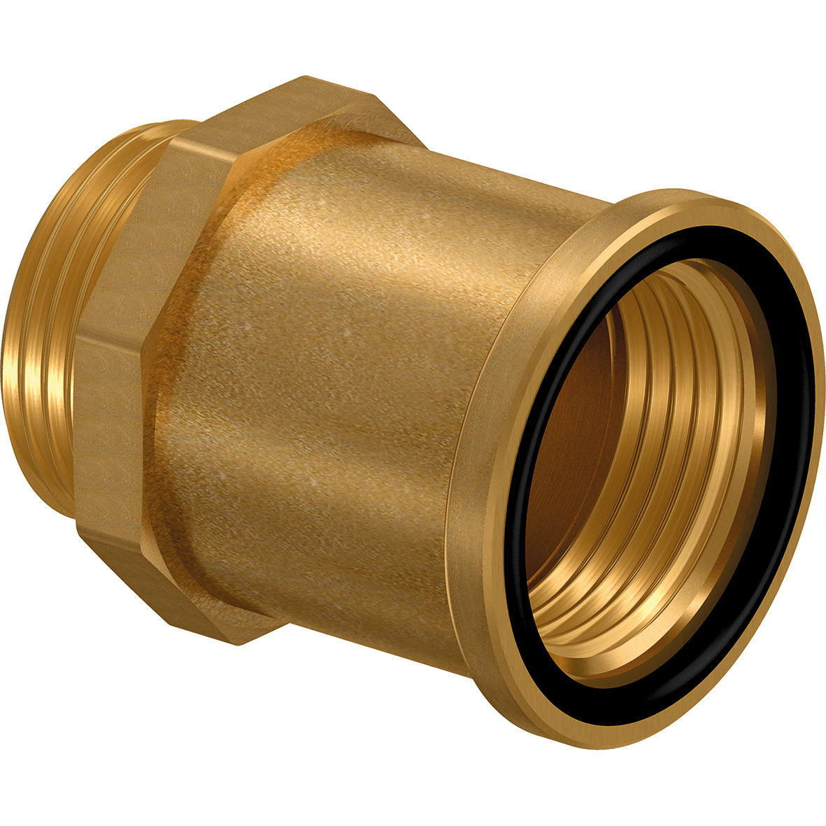 Fixbussning med in- och utvändig gänga. O-ring medföljer kopplingen. Tillverkad i rödgods.