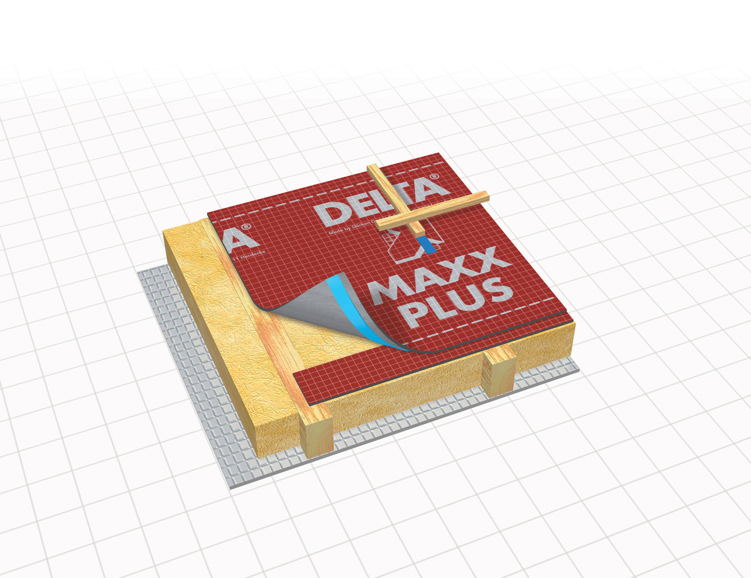 Delta-Maxx Plus Optimalt skydd för isoleringen vid frihängande tak. Diffusionöppen,vindtät, frihängande underlagstak för isolerande lutande tak.