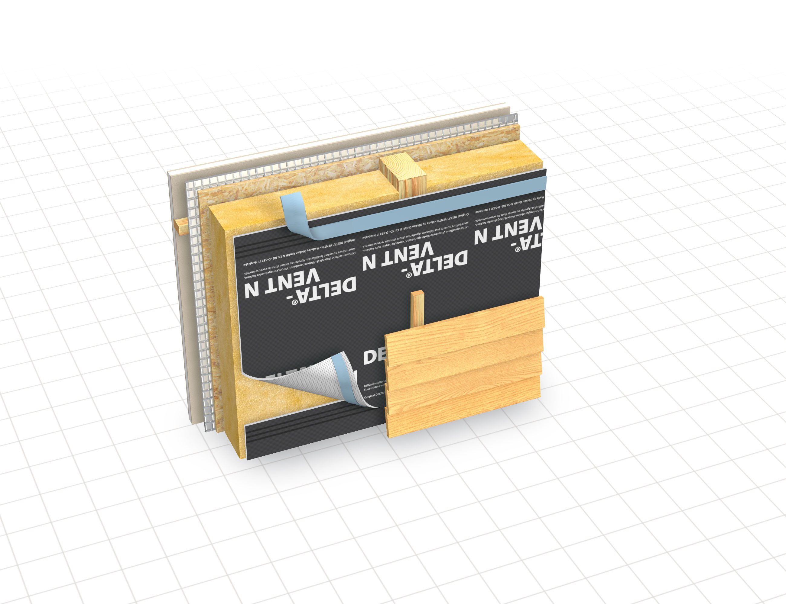 Delta-Vent N Plus Diffusionsöppen, vind och vattentät duk. Som vindspärr för yttervägg.