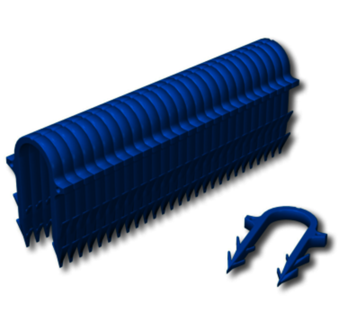 Byglarna är sammansvetsade i rader för att enkelt kunna fylla på bygelpistolen. Som standard används 50 mm och vid tunna isoleringar förlagda på t.ex. betongvalv används den korta pistolbygeln.