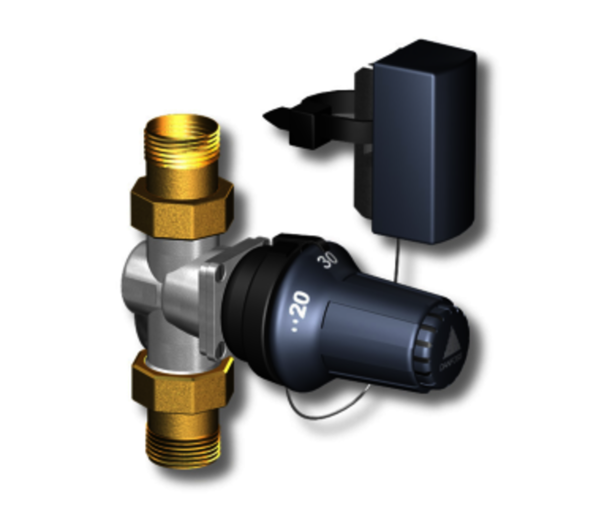 Temperaturbegränsningsventil för inkoppling till LK Shunt 2/3-2,5 i manuellt utförande till primärsystem med konstant framledningstemperatur. Ventilen monteras på shuntgruppens primärsida med termostatens kapillärrörsförbundna anliggningsgivare monterad på shuntgruppens tilloppsrör sekundärt. Ventilen har inställbart Kv-värde från 0,8-2,6.