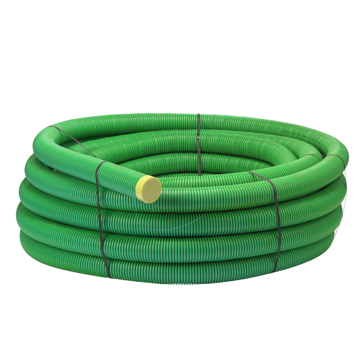 Korrugerat dubbelväggsrör på ring med svart slät insida. Försedd med dragtråd och proppar. PE 110/95. SRN. Lämplig vid förläggning av svagström.
