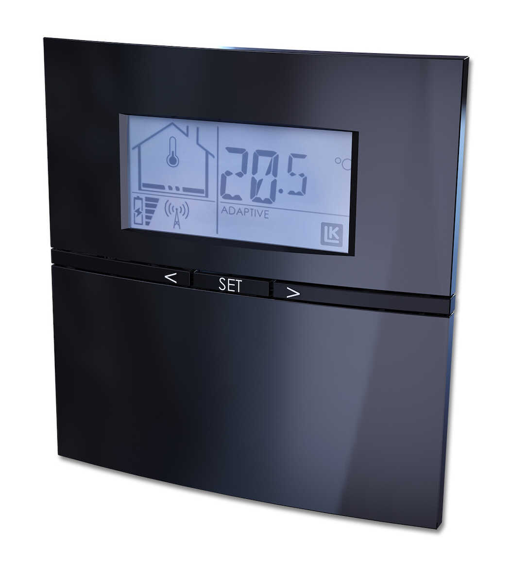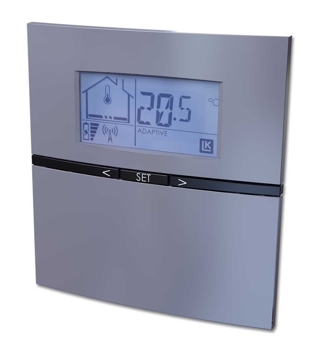 Vid användning av termostatens nattsänkning-/ spartemperaturfunktion arbetar den med adaptiv (självlärande) funktion. Knapparna är låsbara och på så vis kan termostaten även användas i offentlig miljö. Möjlighet finns för inkoppling av golvgivare (läs mer under LK Extern givare ICS/S2). Vidare finns funktioner som Braskaminsfunktion, Områdesbegränsning av temperaturspann, By-passinställning av golvvärmekrets m.m. Rumstermostaten används tillsammans med LK Mottagarenhet 1 ICS.2 och LK Mottagarenhet 8 ICS.2.
