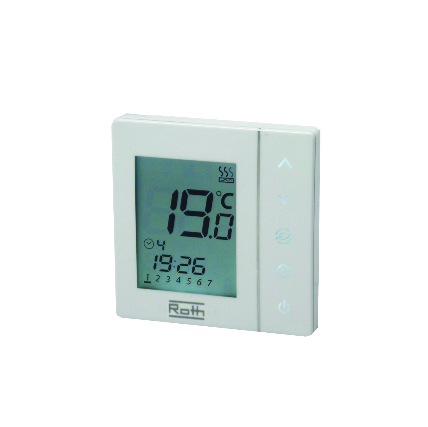 Roth Basicline™ 230TBakgrundsbelyst termostat med funtioner förveckoschema, semester etc.Max. 5 st reglermotorer per termostat.
