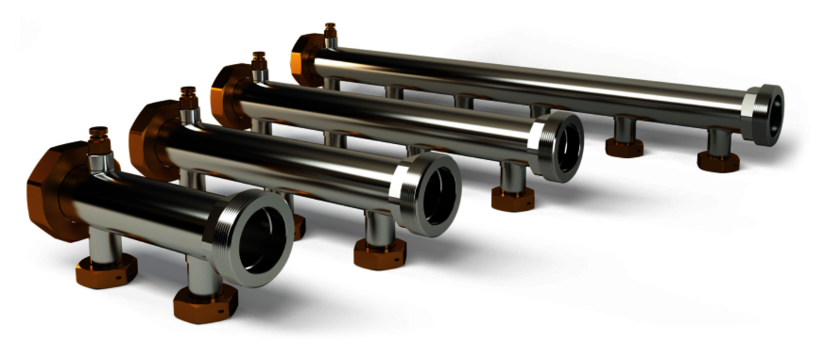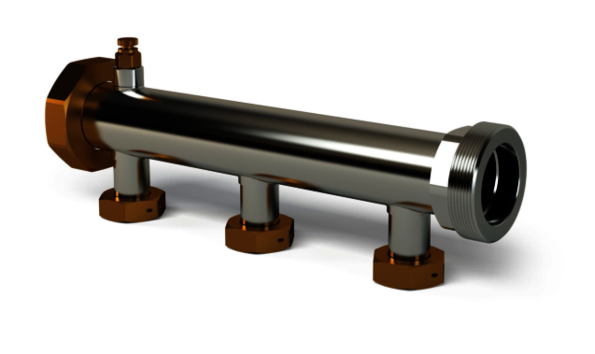 LK Fördelare Qmax används med fördel som gruppfördelare i system där behov finns på större flöde. Fördelaren installeras i system med samma tryck och temperaturområden som Universalrören, d.v.s. max 1,0 MPa vid +95 ºC.