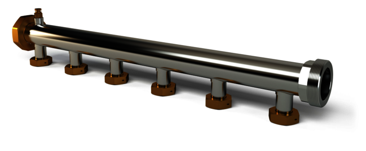 LK Fördelare Qmax används med fördel som gruppfördelare i system där behov finns på större flöde. Fördelaren installeras i system med samma tryck och temperaturområden som Universalrören, d.v.s. max 1,0 MPa vid +95 ºC.