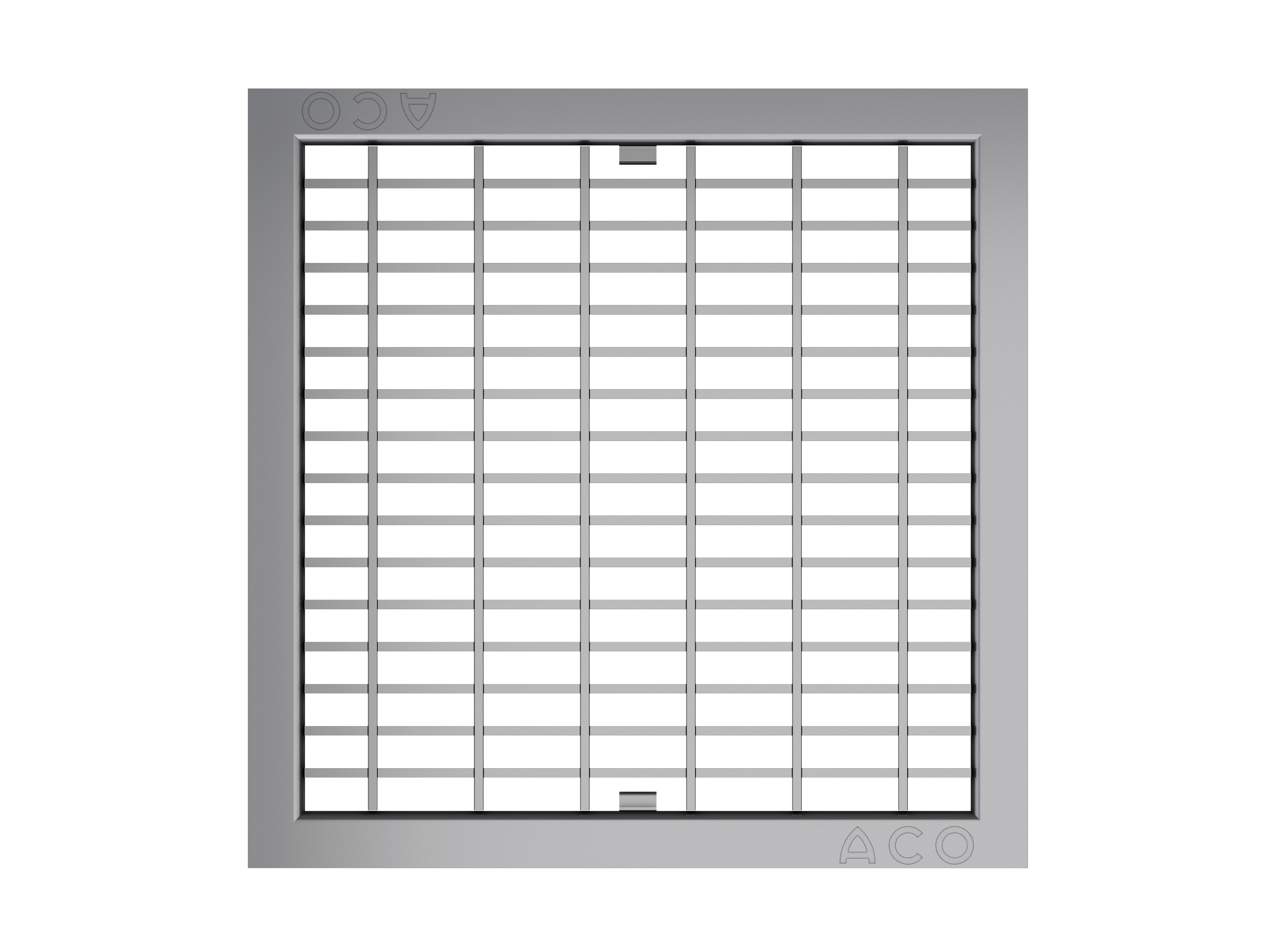 Rutgaller i förzinkat stål. Mått (LxB): 250 x 250 mm. Rutmönster: 30 x 10 mm. Passar ACO Self Europoint-serien.