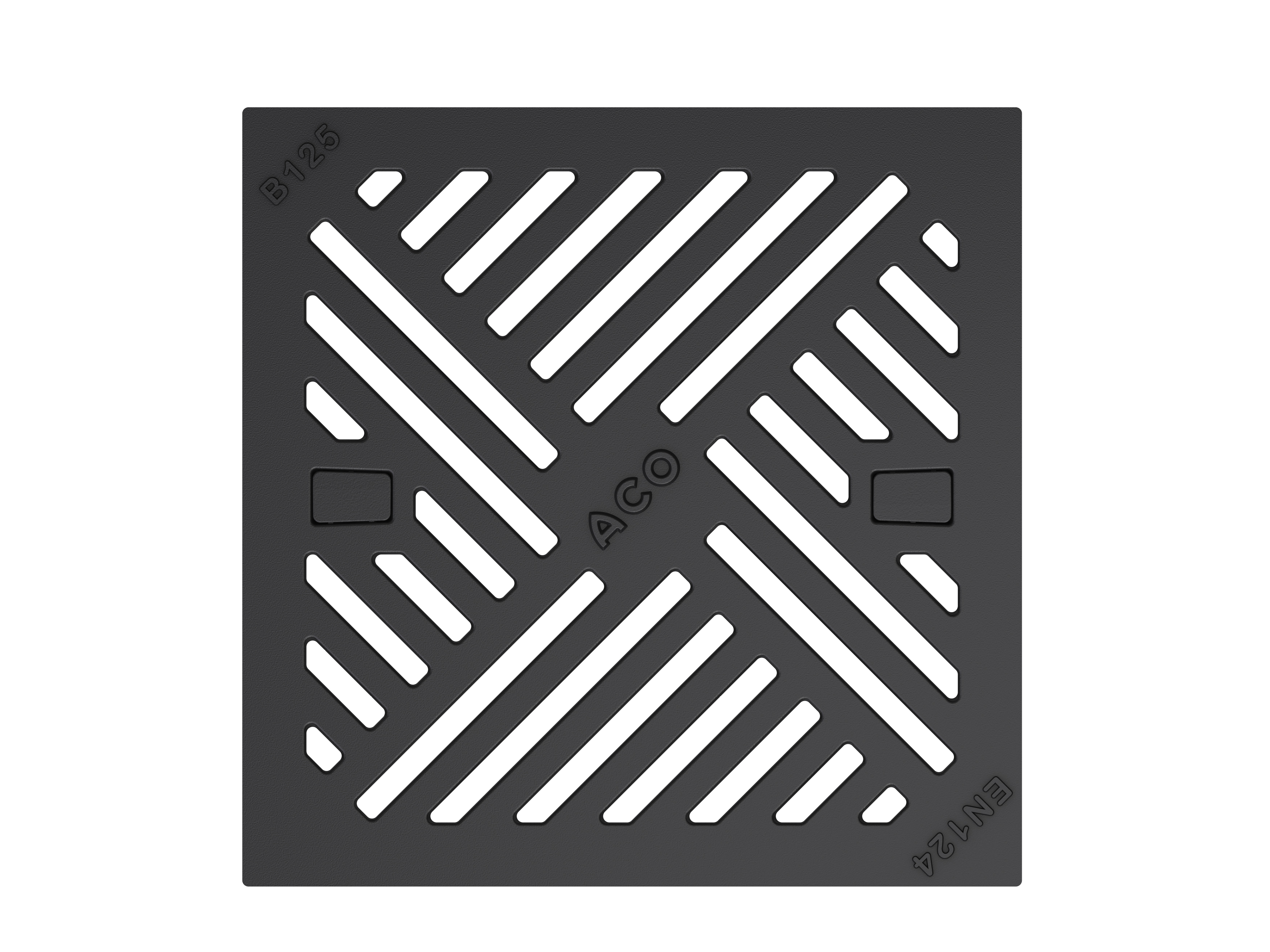 Slitsgaller i segjärn. Mått (LxB): 250 x 250 mm. Passar ACO Self Europoint-serien.