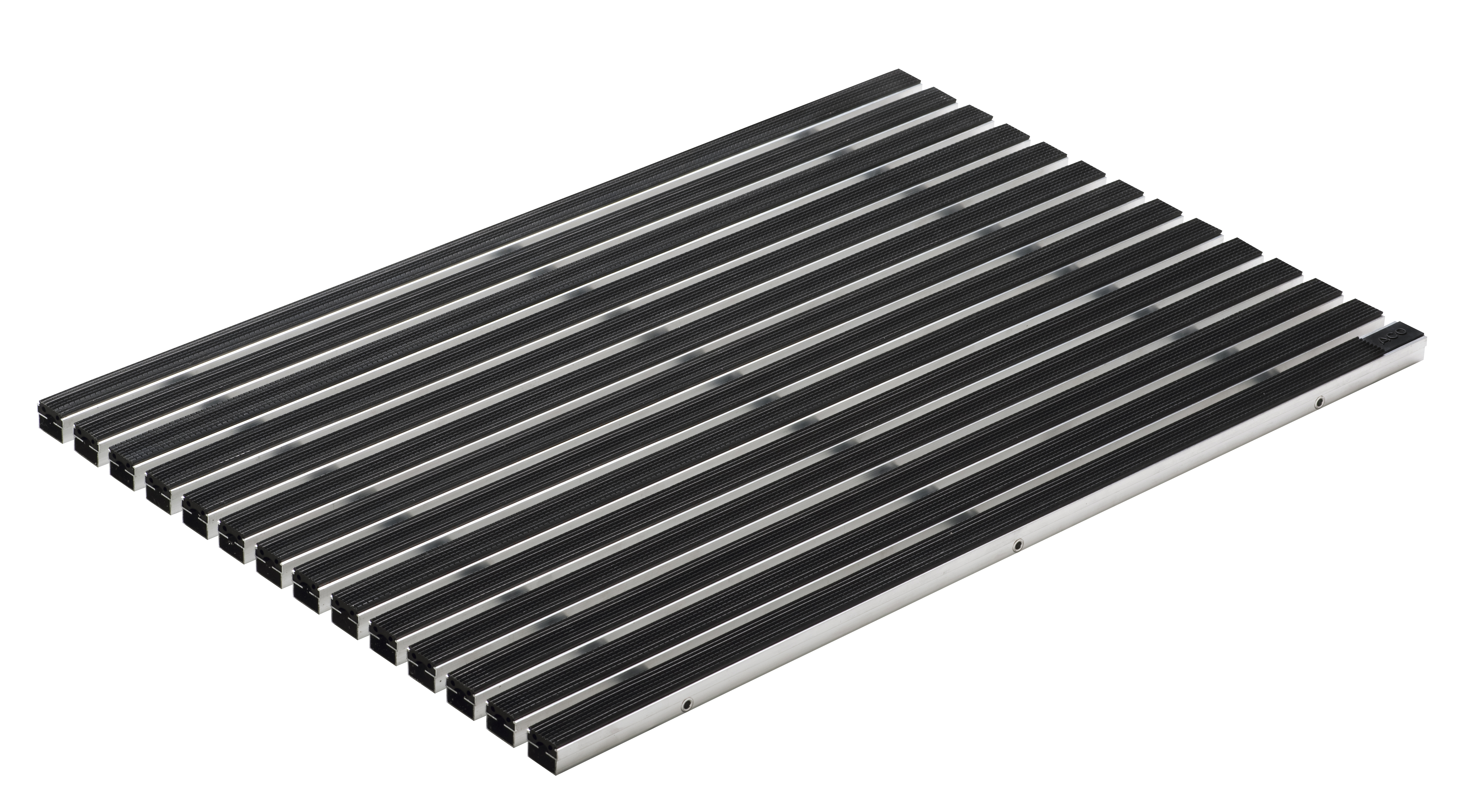 Galler i aluminium med gummiinlägg. Mått (LxBxH): 600 x 400 x 20 mm. Passar ACO Self Vario-serien. För montering utomhus under tak.