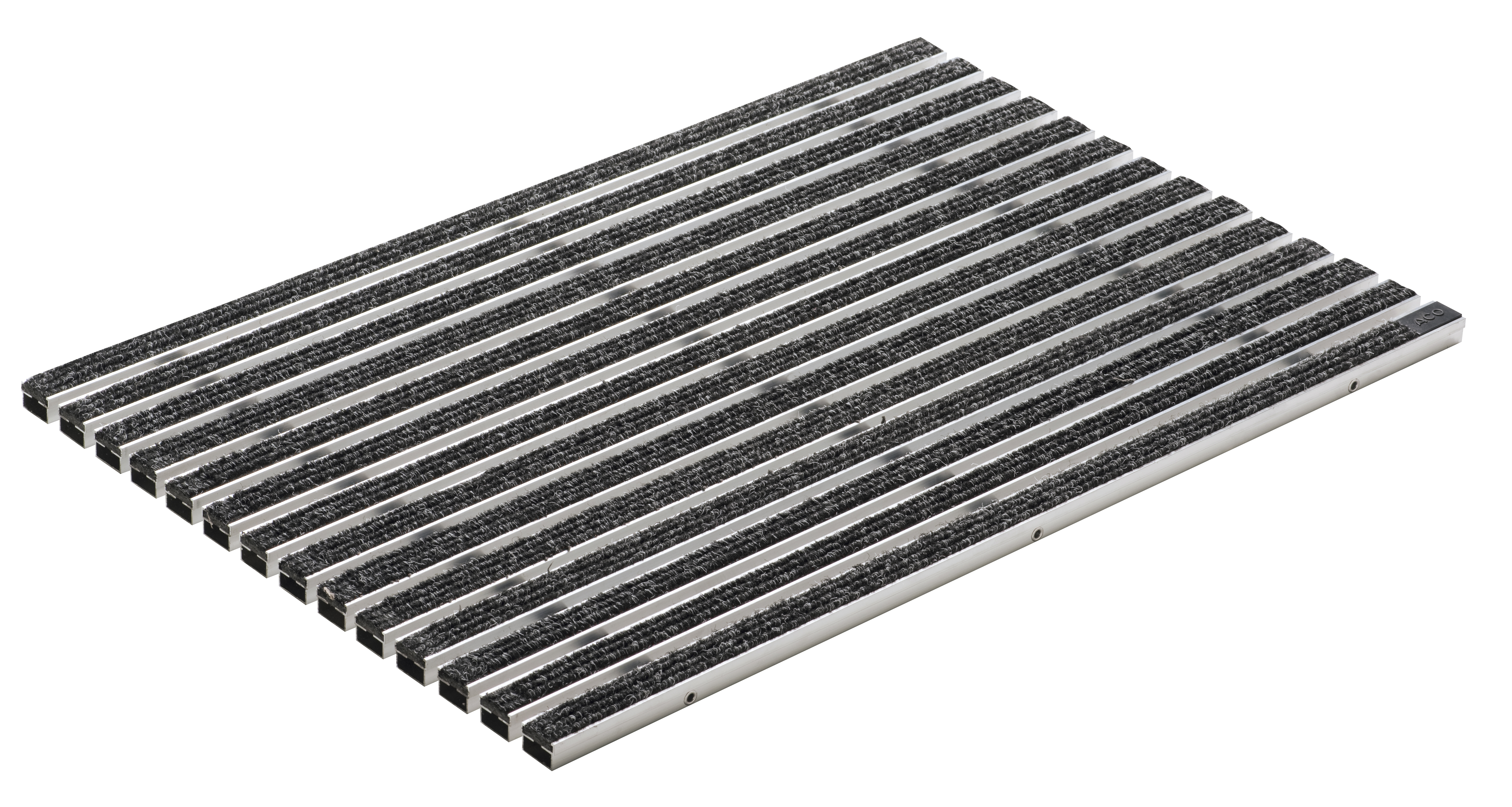 Galler i aluminium med nålfiltsmatta. Färg: Svart. Mått (LxBxH): 1000 x 500 x 20 mm. Passar ACO Self Vario-serien. För montering utomhus under tak.
