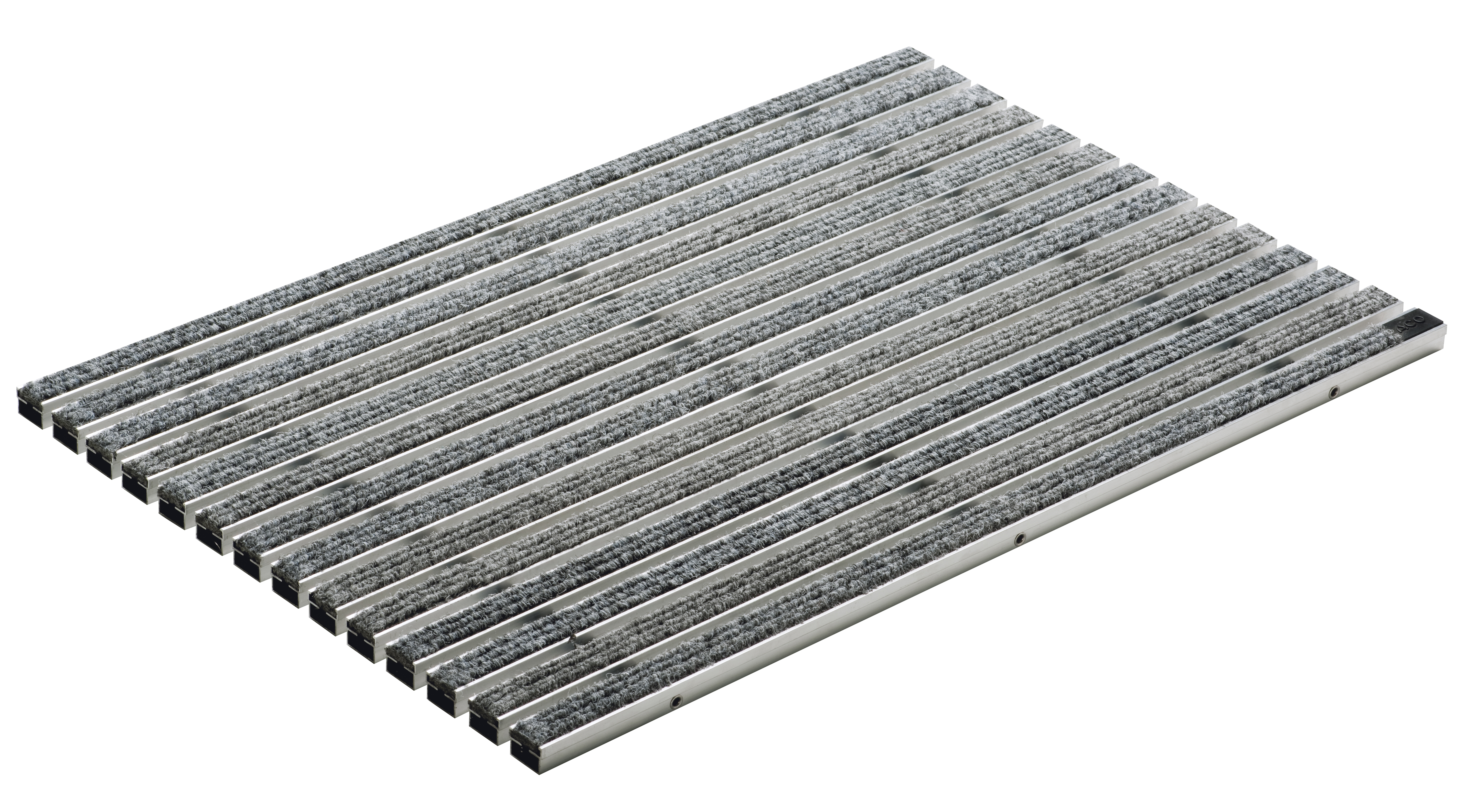 Galler i aluminium med nålfiltsmatta. Färg: Grå. Mått (LxBxH): 1000 x 500 x 20 mm. Passar ACO Self Vario-serien. För montering utomhus under tak.