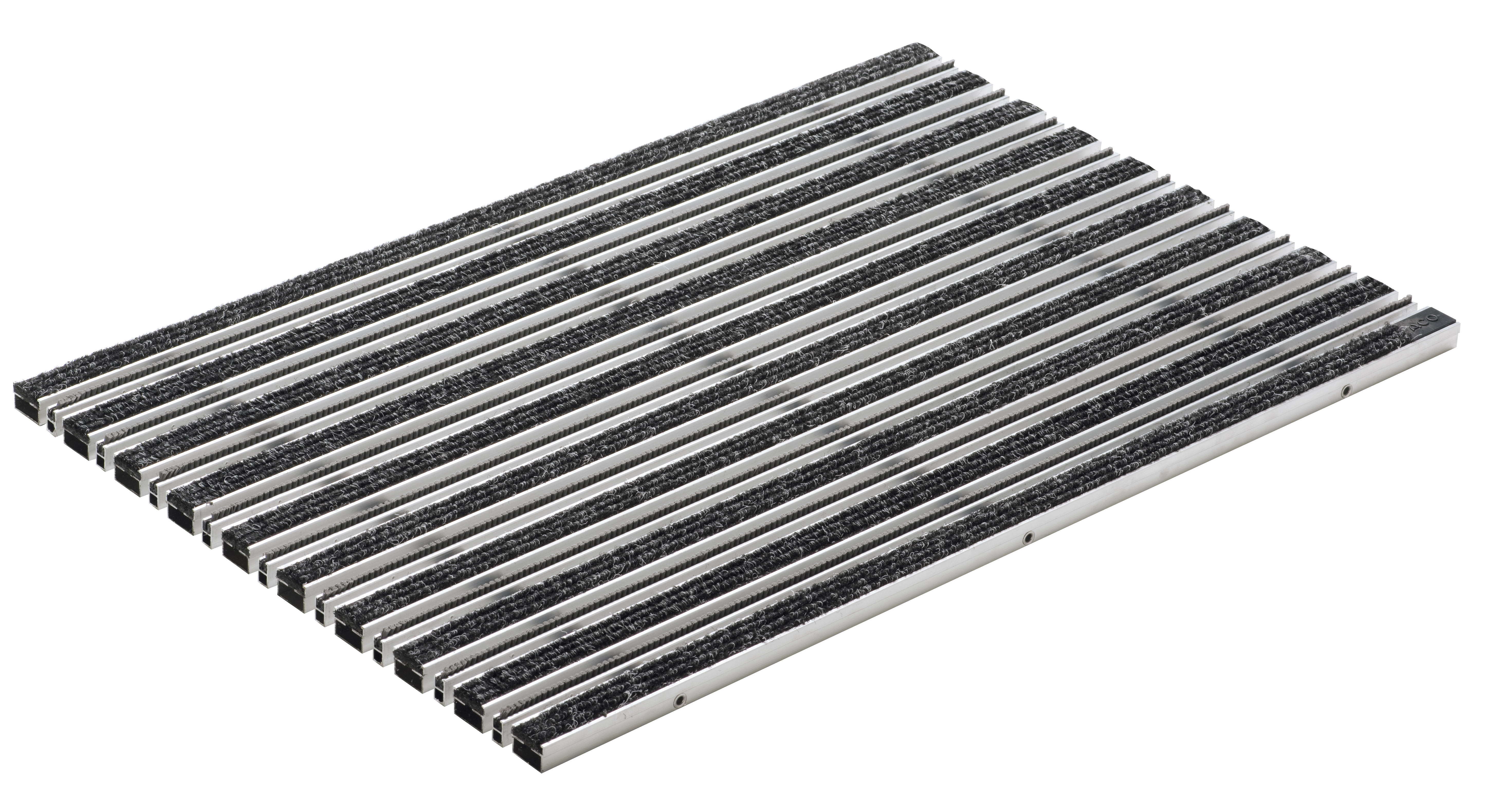 Galler i aluminium med nålfiltsmatta och en gummiborste. Färg: Svart. Mått (LxBxH): 600 x 400 x 20 mm. Passar ACO Self Vario-serien. För montering utomhus under tak.