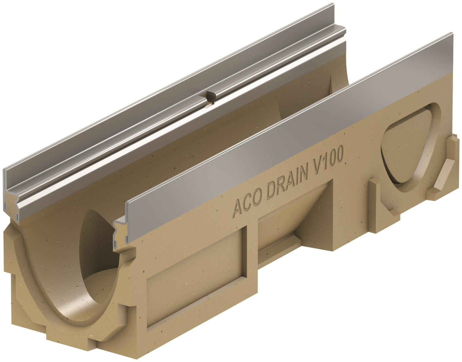 ACO 12362 V100S-15.1 ränna 0,5 meter utan fall, med integrerad förzinkad stålkant, med L/T anslutning