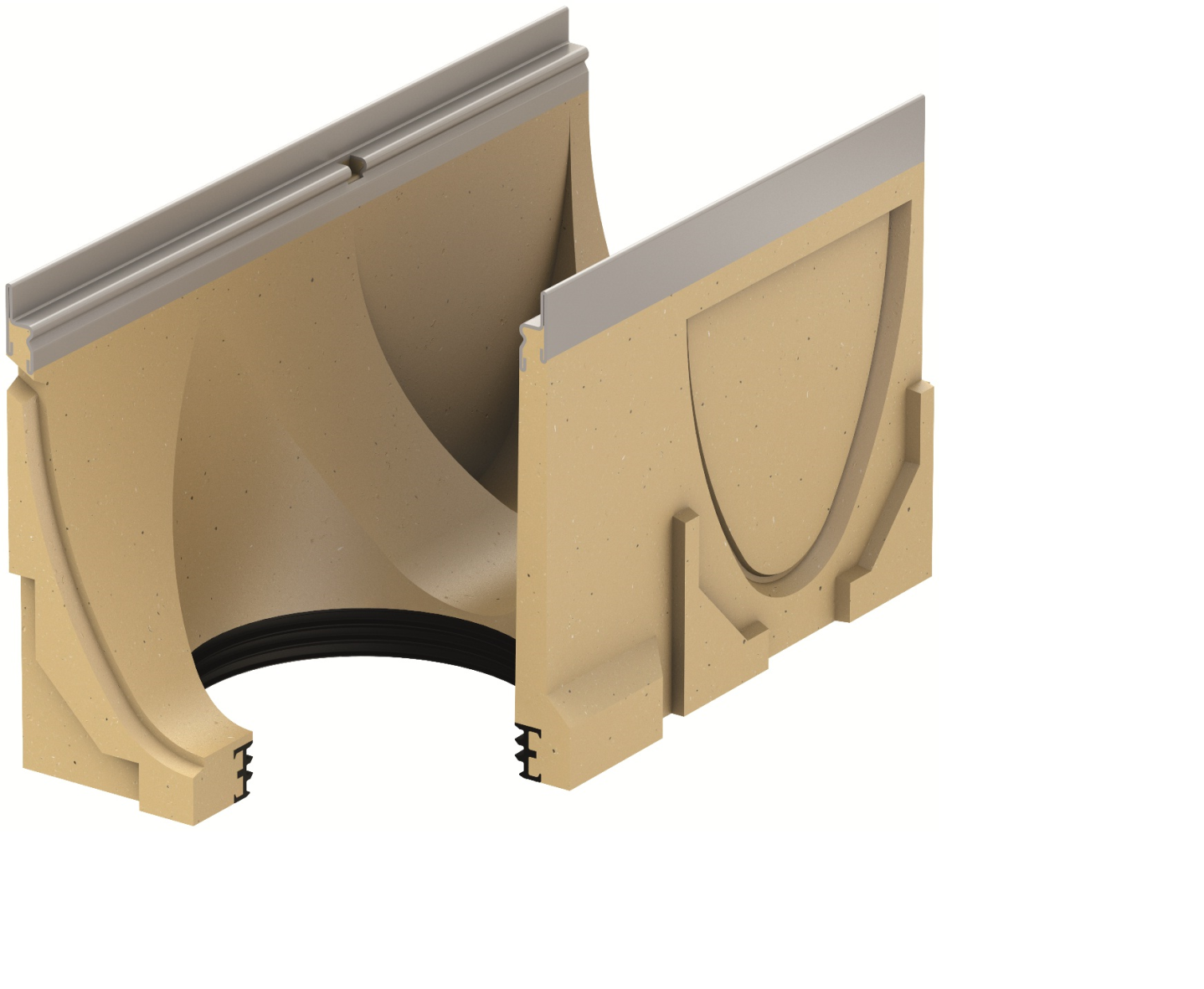 ACO 13173 ACO V200S-20,2 Ränna 0,5m utan fall, integrerad fz stålkant, med bottenutlopp 200, inkl g-ring, med L/T anslutning