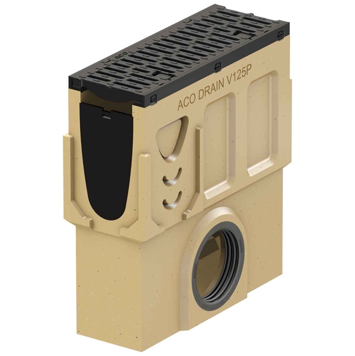 ACO V125P Sandfång H=500 ansl 160 kantförstärkning av segjärn. ACO Powerdrain, ränna med integrerad buller dämpning.