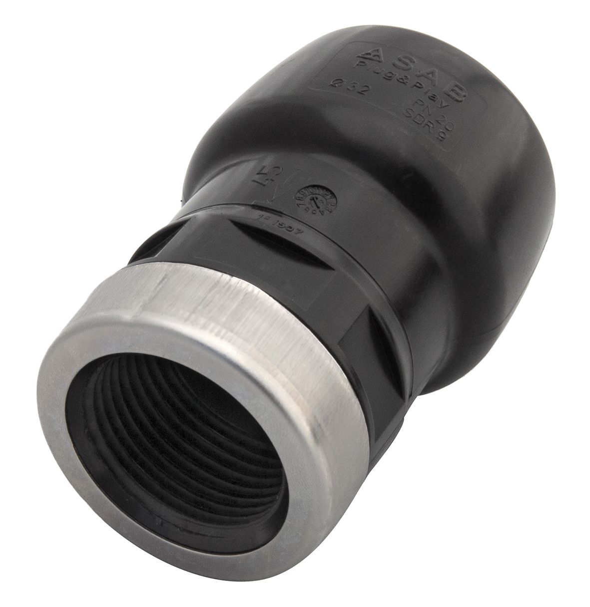 Dragfast tryckvattenkoppling, för PE-rör med direktinstick. Kopplingarna har en dubbel läppringstätning och speciellt utformad gripring.